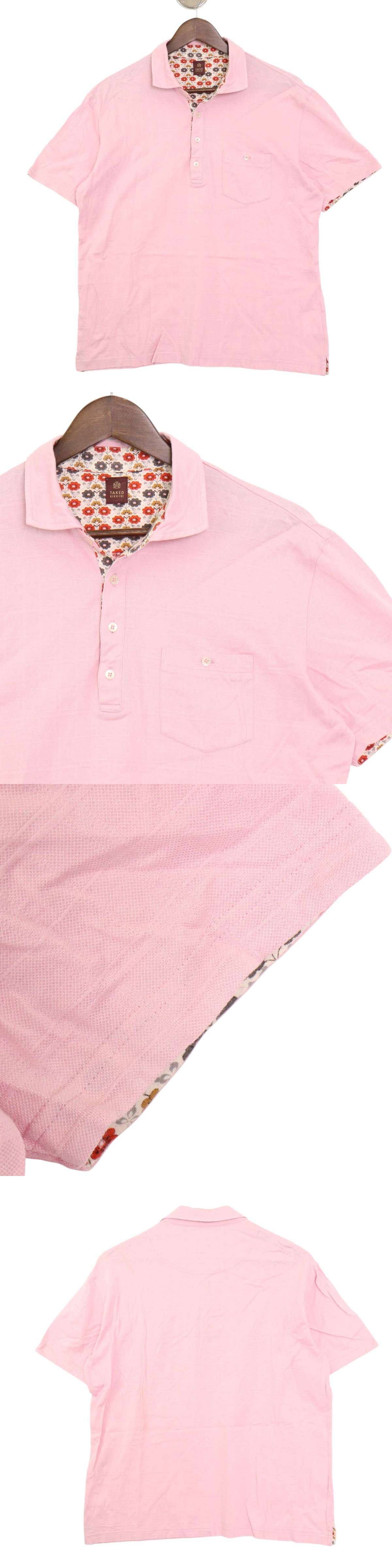 TAKEO KIKUCHI タケオキクチ 春夏★ 裏地花柄 チェック ポロシャツ Sz.3 メンズ
