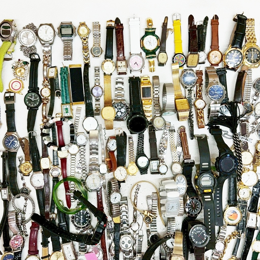 | ▼商品特徴 商品に興味をもっていただき、ありがとうございます。 写真にあります 時計 まとめ 卸 商品です。 ◆商品 : 時計 まとめ 卸 ・画像にあります様に時計などになります。 ※各商品材質など一切査定しておりませんのでご了承ください。 ◆ブランド : ・SEIKO CASIO CITIZEN RADO ANNE KLEIN VEGA BUREN SUNLORD ミラショーン Q&Q ALBA AUREOLE ZIPPO J.HARRISON SWATCH NIXON ダンヒル CYMA バーバリー など ◆状 態 : USED ・金具の壊れているもの、傷、汚れがあるものもあります。 ・状態チェックしておりませんのでクレーム対応致しません。 ※返金には対応出来ませんのでご了承ください。 ※同梱可能な場合もございますのでその際はおまとめ取引をご選択ください。 ※配送方法がヤフネコ又ゆうパック2種類ございますので同梱出来かねる場合がございます。 こちらで他にも出品中。Crew・actショップ↓↓ ![]() | ||