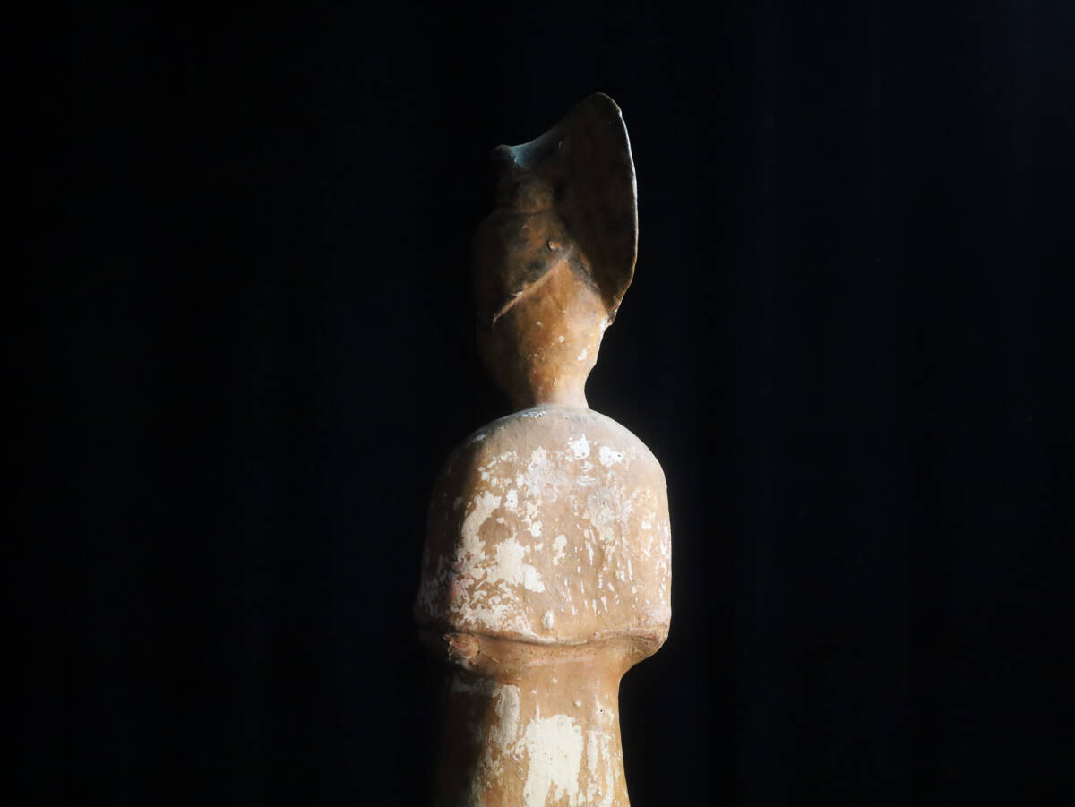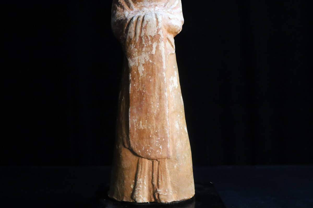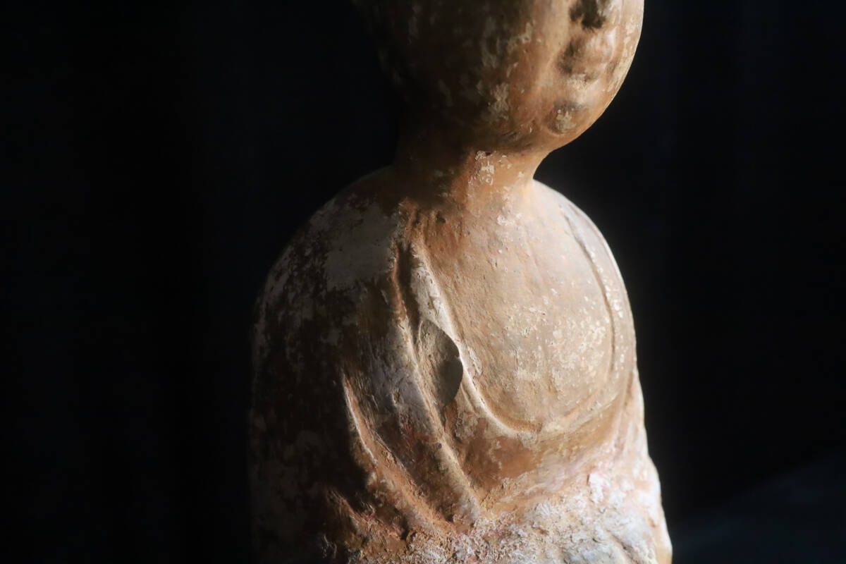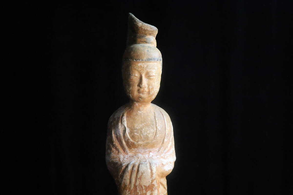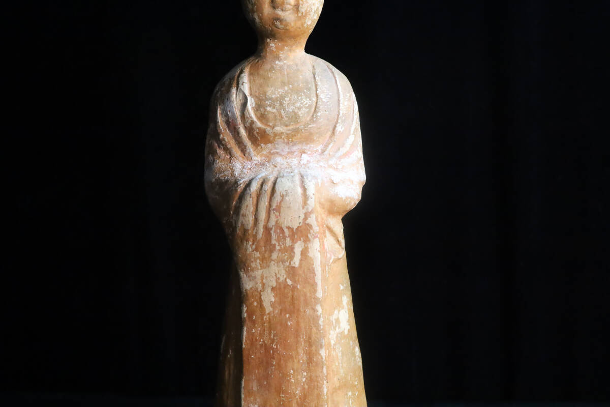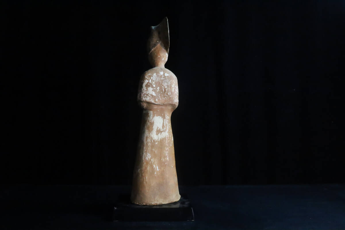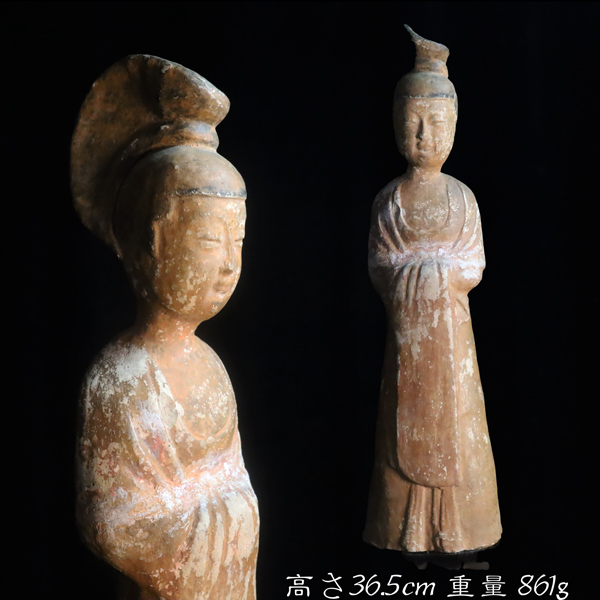 ◇雅◇ 中国美術 唐時代 加彩 婦人俑 婦女立俑 高さ36.5cm/861g 女性俑 置物 時代物 時代古玩 台座付 /HK.25.8 [M89.1] OQN2