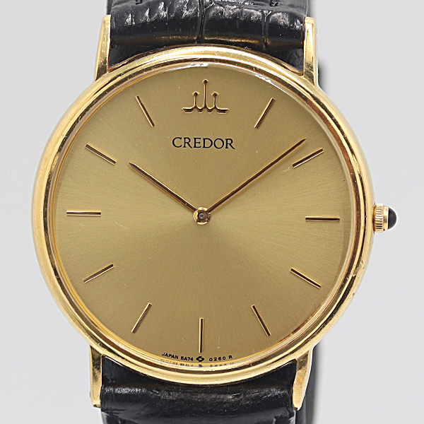デッドストック級 セイコー クレドール 5A74-0140 18K/750/17.4g ゴールド文字盤 QZ メンズ腕時計 15773ABC7587410 2DIT MSS