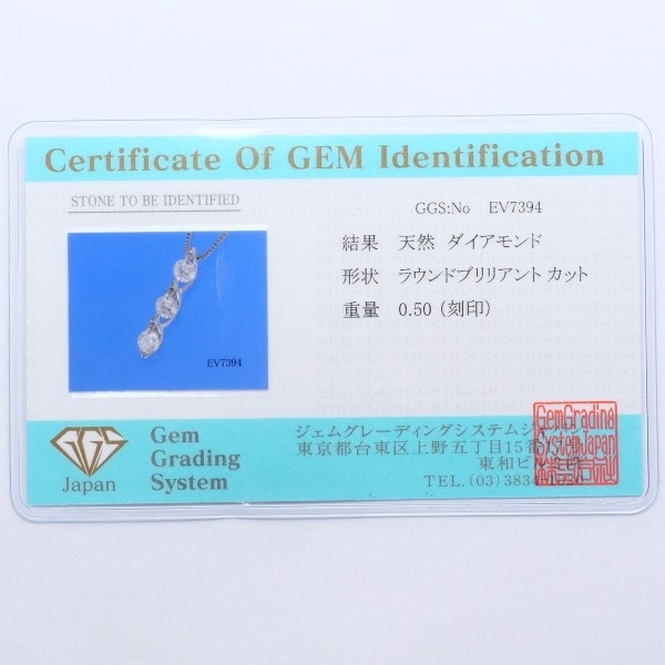 | K18WG ネックレス ダイヤ 0.50 カード鑑別書 総重量約2.8g 約44cm 中古 美品 送料無料 | |