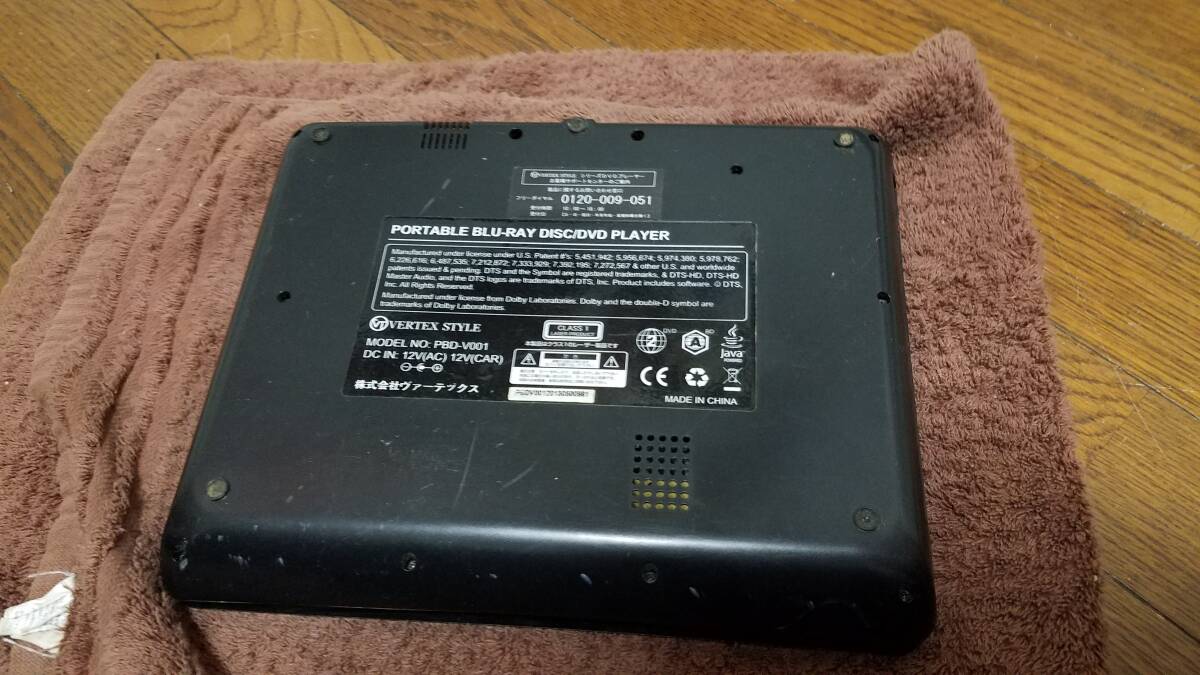 【※ジャンク】 VERTEX STYLE PBD-V001 ブルーレイDVDプレーヤー 本体のみ(ACアダプターなし) 通電確認のみ DVD再生しないためジャンクにて