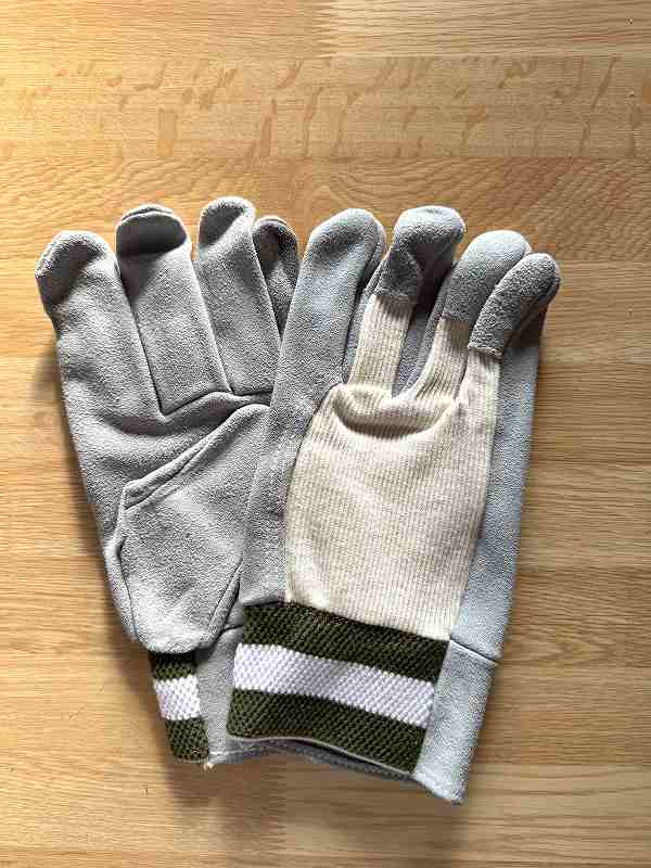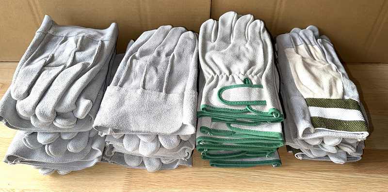 こちらは、作業用高級牛床皮手袋マジック付5双・牛床皮甲メリヤス5双・牛床皮背縫い手袋10双です。