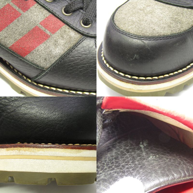 | 状態 | C 中古:目立つ傷や汚れなどがあり使用感の多い商品です。 ※着用の際、内部の革の色が色移りする可能性がございます。 紐交換の可能性有り。左足履き口に裂け有り。両足内装、インソールに擦れ傷、表皮のひび割れ有り。つま先、かかと周りに擦れ、打痕傷有り。薄汚れ有り。ミッドソールに変色有り。ベロに擦れ有り。 ソール減り:残り8/10程度 |