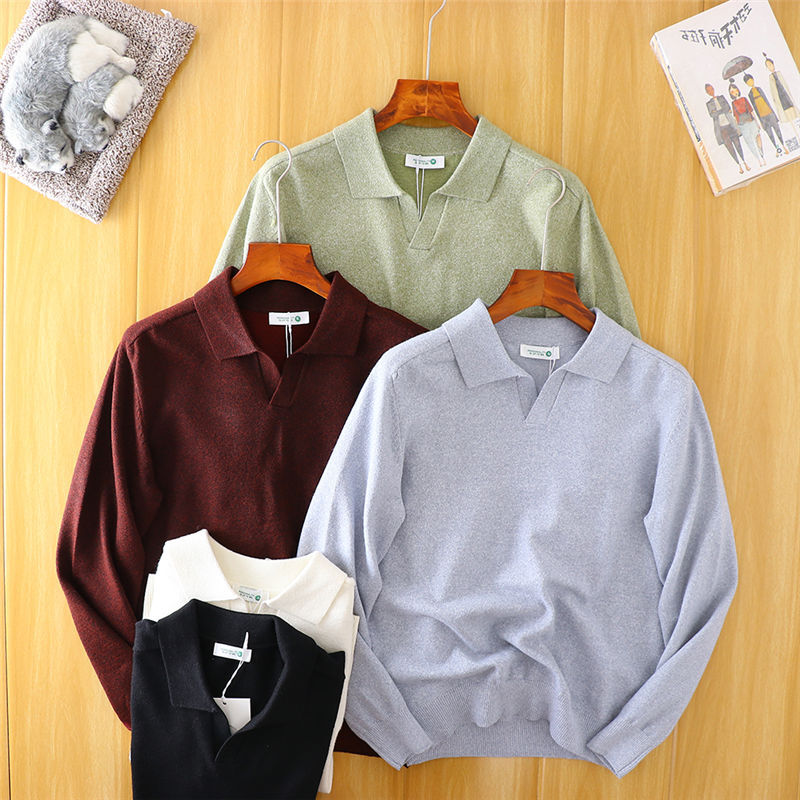Y6448-M グレー 新品 ニット セーター ウール混 スキッパー ふんわり ウォッシュ加工 暖かさ 秋冬 厚手 ビジネス メンズ トップス