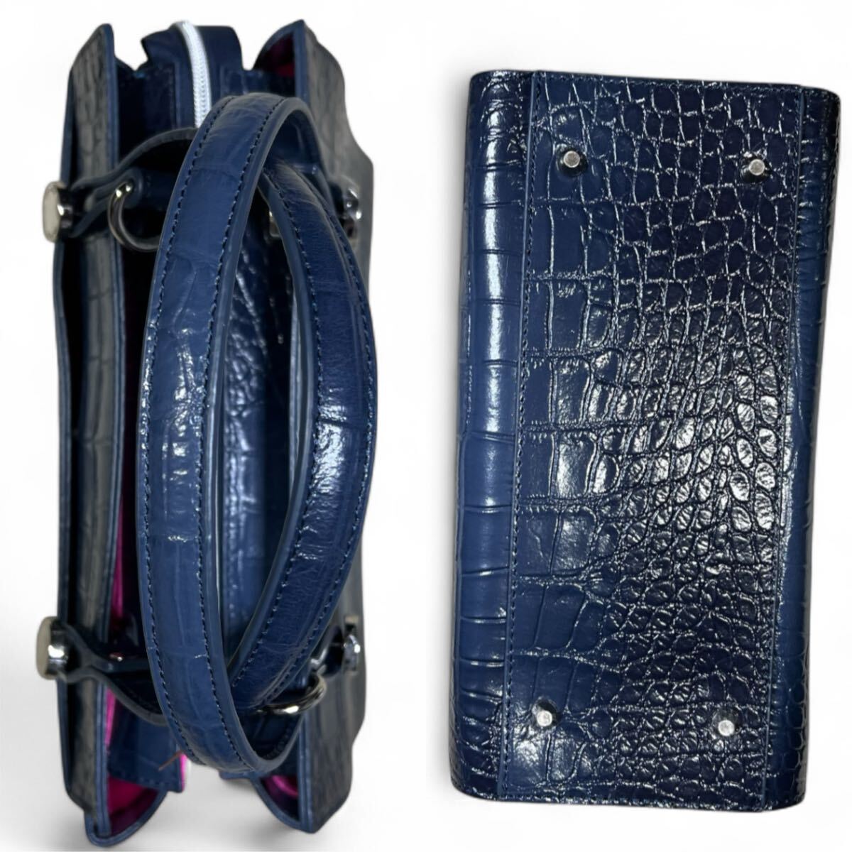 ● 未使用【cat in the closet】クロコ型押し レザー ネイビー ハンドバッグ トートバック