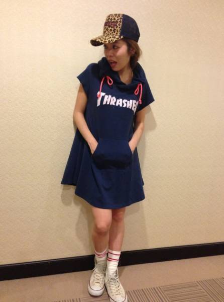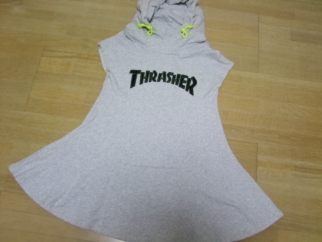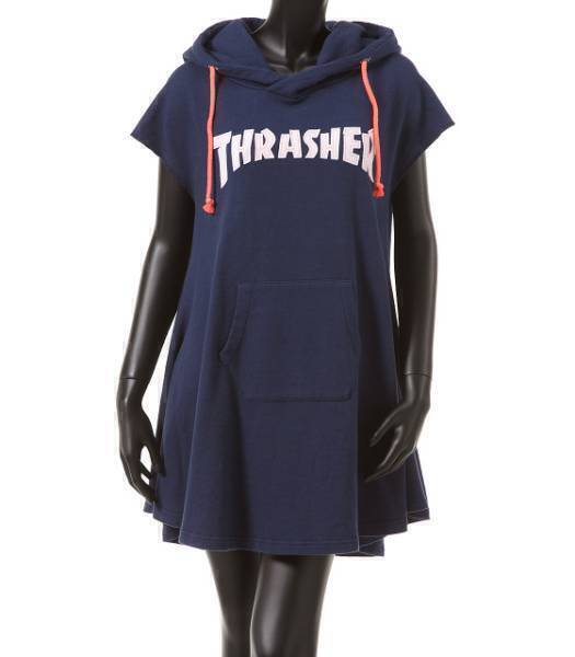 RODEO CROWNS ロデオクラウンズ THRASHER スラッシャー コラボ ワンピース フード スウェット ネイビー ライトグレー 新品 中古品