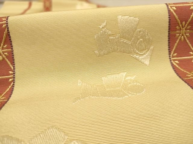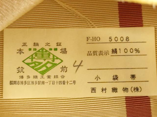 【正絹】 詳細に関しましては、画像をご確認ください。 本場筑前博多織は、 福岡県福岡市博多区やその周辺で生産される絹織物です。 仏具のひとつである独鈷、華皿を基にした幾何学模様が織られています。 江戸時代に筑前藩主だった黒田長政が幕府への献上品にしたことから、 博多献上、献上博多とも呼ばれます。 横畝が際立って見える経畝織りという織りになっています。 30〜60本の細い経糸を使うため、こしやはりがあり、 地合が硬く、光沢感があります。 きちんと締まり、くずれにくい、締めやすい帯といわれています。 大変上質な逸品になります。 お安く出品致しますので、是非この機会にいかがでしょうか? ※両側未かがりですが着用には問題ありません。 |