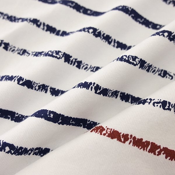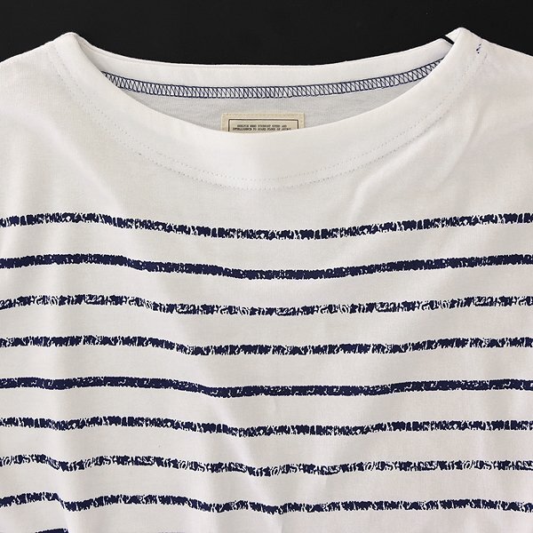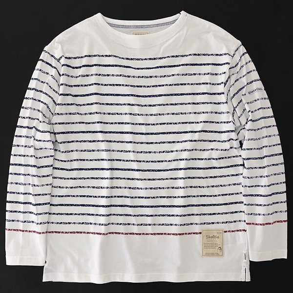 【Sheltie Club】 〈湘南の海〉をテーマとしたブランドコンセプトに沿って、マリンテイストを味付けしたシンプルなスタイルを信条とし、ラフで、気取らず、気張らない、ややゆったりとした着こなしを提案します。 ゆったりシルエットにボーダー柄のアクセントを施したデザインで、カジュアルなスタイリングには欠かせないバスクシャツです。 コットン100%の素材を使用しているので、肌触りが滑らかで心地良く、吸汗性やストレッチ性にも優れており、オールシーズンで着用いただけます。 襟ぐりが広いボートネックになっているので、脱ぎ着がしやすいだけでなく、首まわりが開放的でストレスフリーな着心地です。 この他にも、左袖にブランドネームタグ、左前裾にピスネーム、左裾の側面に骨をモチーフとしたビスを装飾しており、細部にまでこだわった仕上がりとなっています。 |