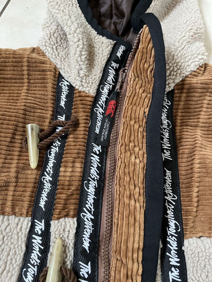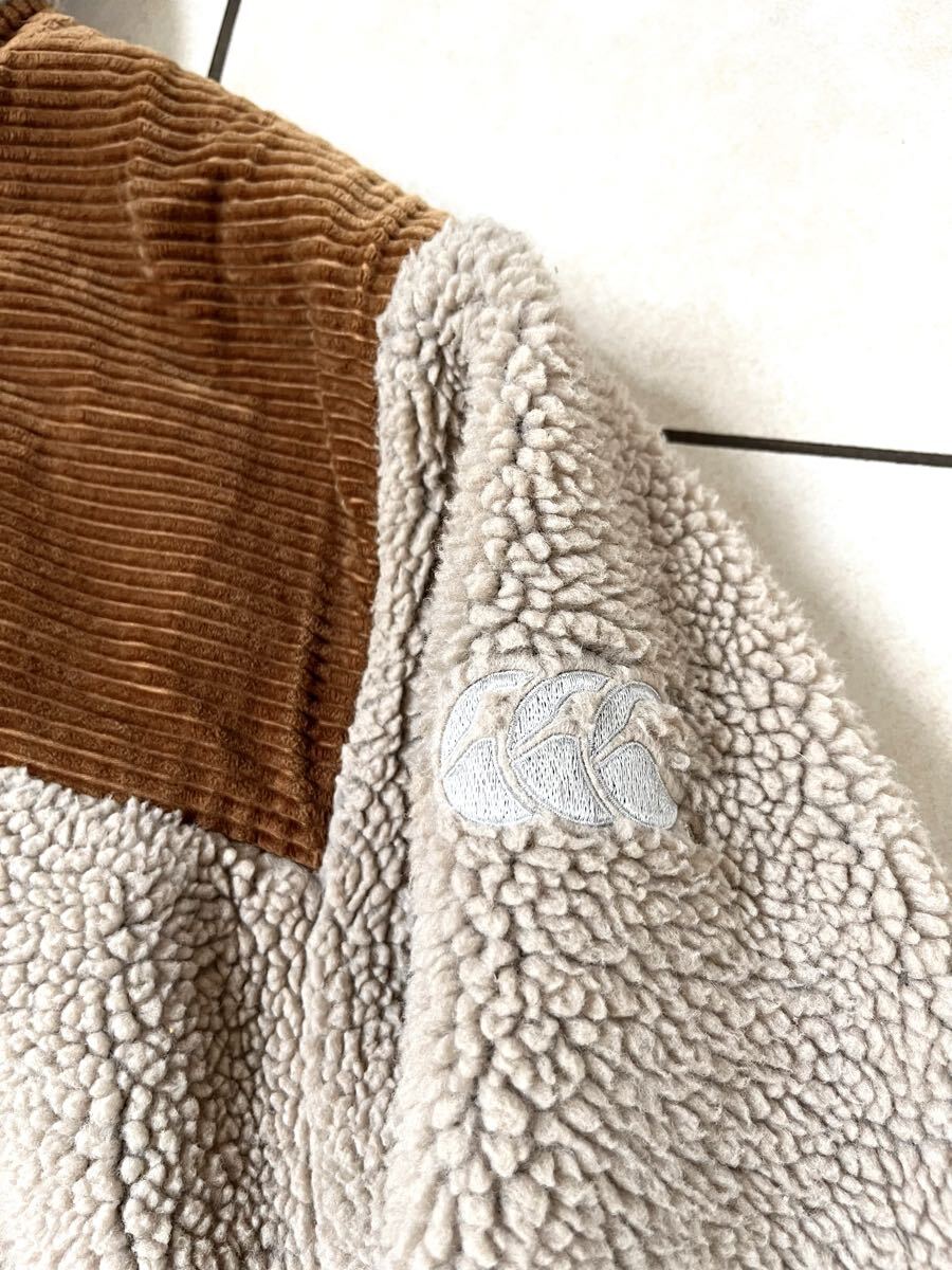 カンタベリーのボアフリースダッフルコート。コーデュロイとのコンビです。