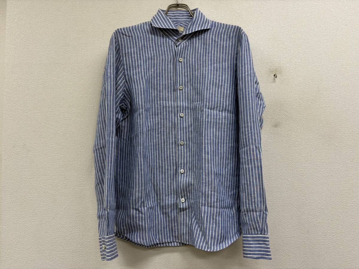 ANGLAIS TESSITURA MONTI社製生地ストライプリネンシャツです。