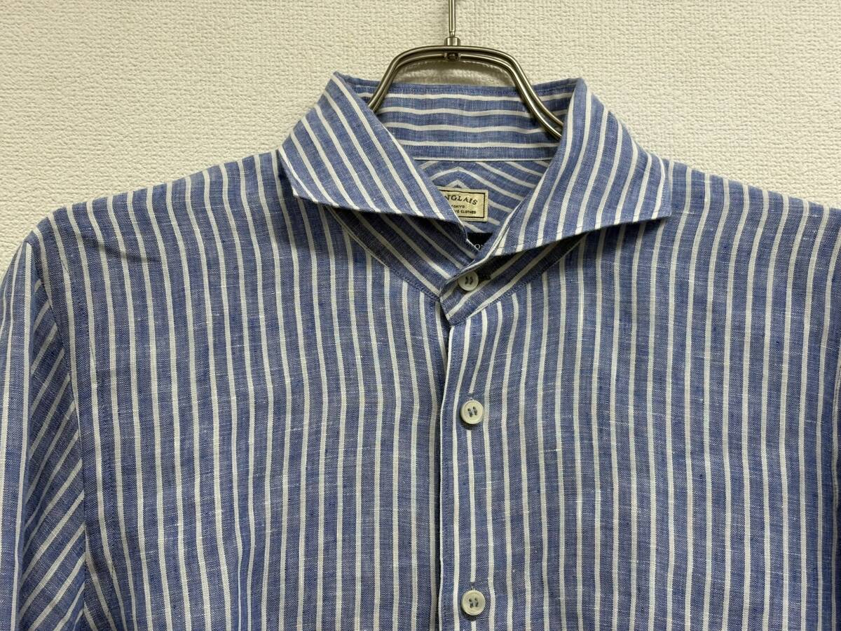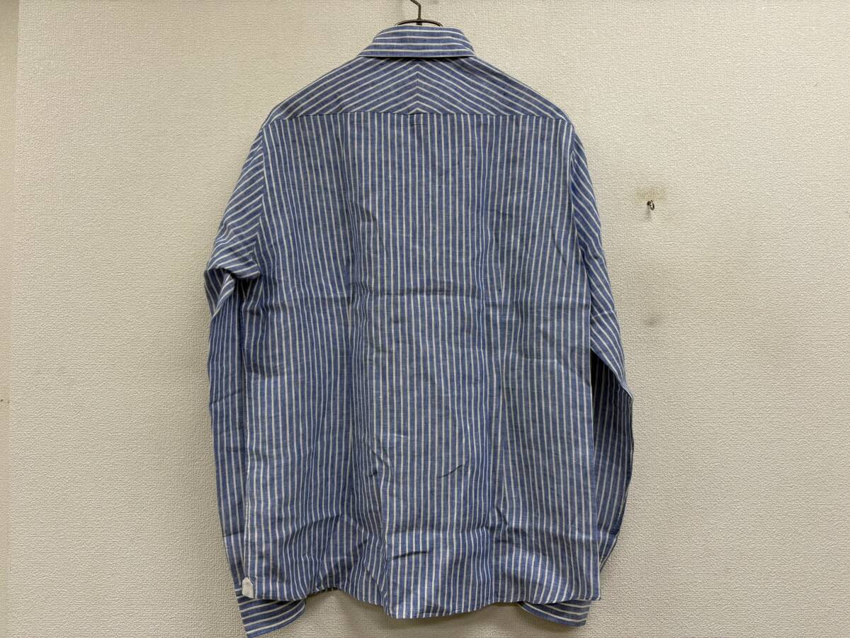 アングレーANGLAIS TESSITURA MONTI社製生地ストライプリネンシャツ★サイズLL★ブルー/ホワイト★A25464A