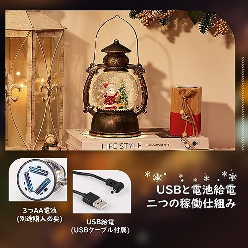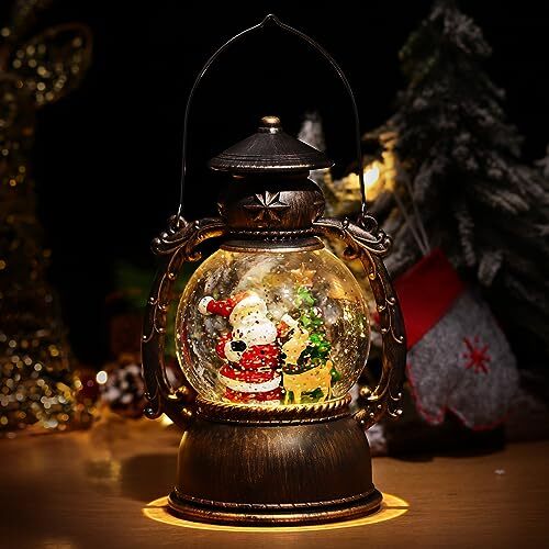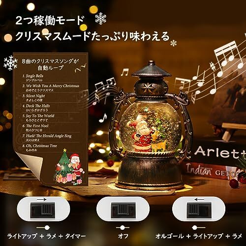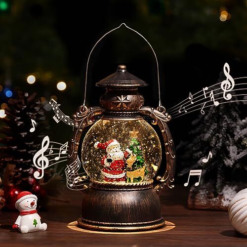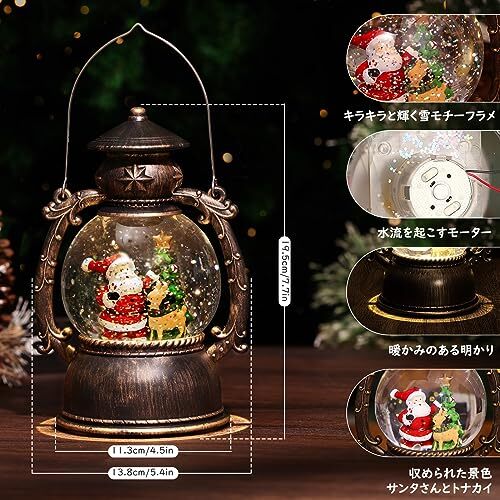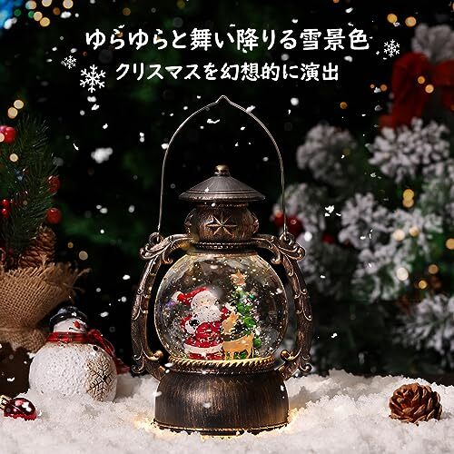 スノードーム Lewondr クリスマスオルゴール クリスマスボール スノーグローブ LEDライト付き 8曲自動ループ 6時間タイマー付き クリスマス置物飾り 提灯型オルゴール インテリア クリスマスプレゼント サンタさんとトナカイ Bronze