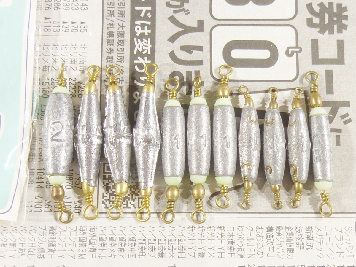 オモリ タル付 2号1.5号1号0.8号【シンカー おもりオモリ タル付き ローリング 中オモリ サルカン スイベル クロダイ まとめてセット売り】