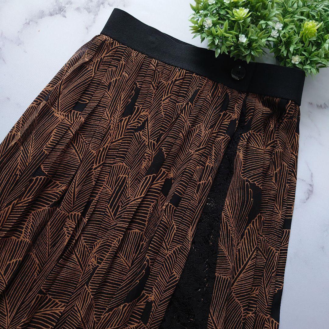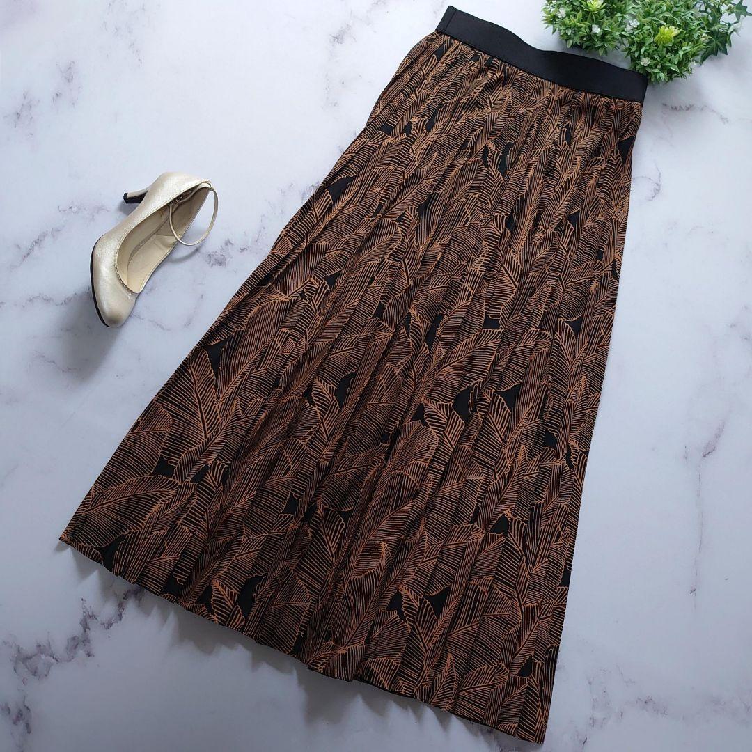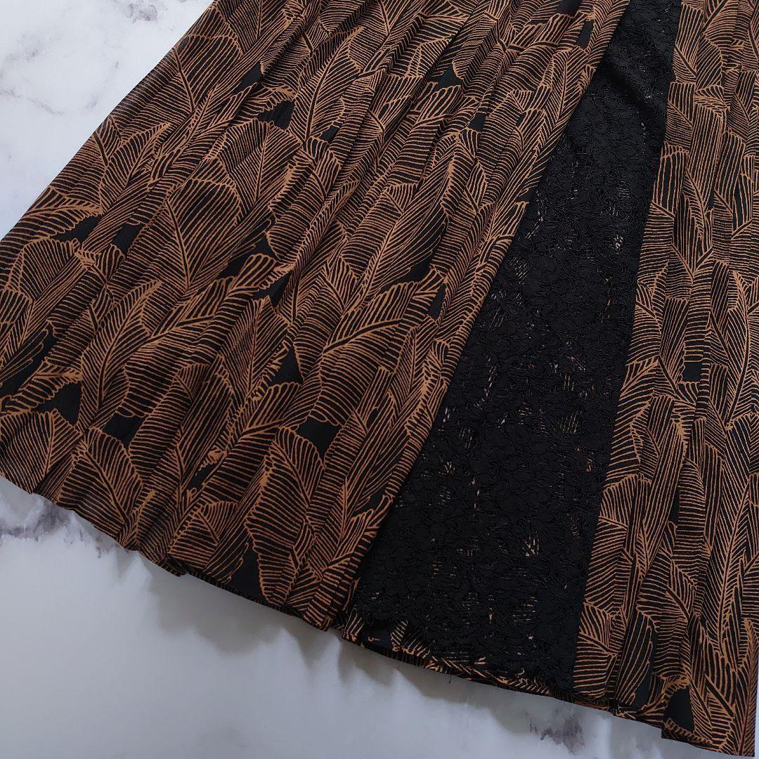 ・リーフ柄のプリーツスカートとレースの異素材組み合わせがとてもオシャレなロングスカートです