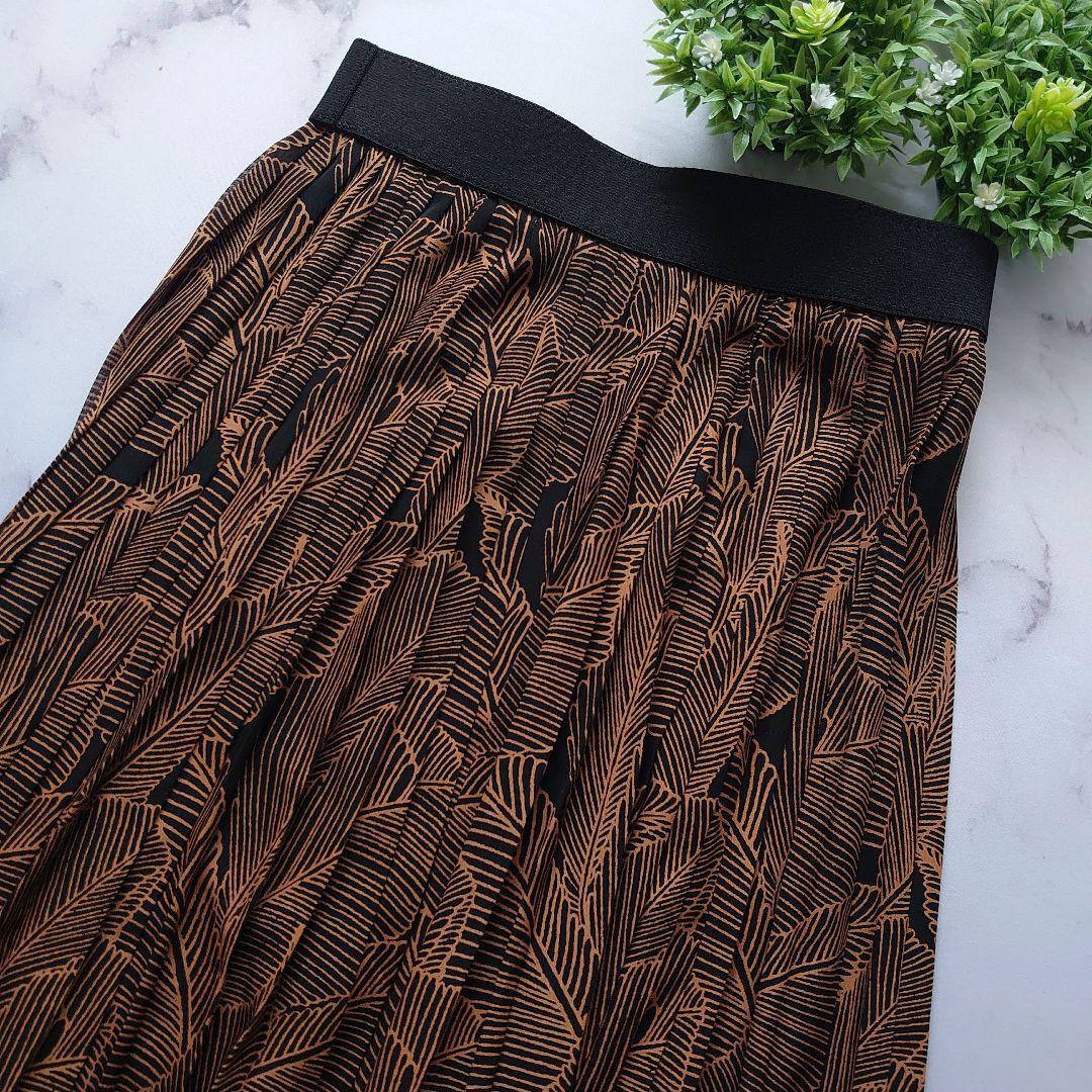 ADORE アドーア レイヤードプリントスカート プリーツ リーフ柄 ボタニカル 植物 花柄 総柄 レース ウエストゴム ブラウン×ブラック 茶×黒 フレア Aライン ロング マキシ丈 38 M ボトムス レディース