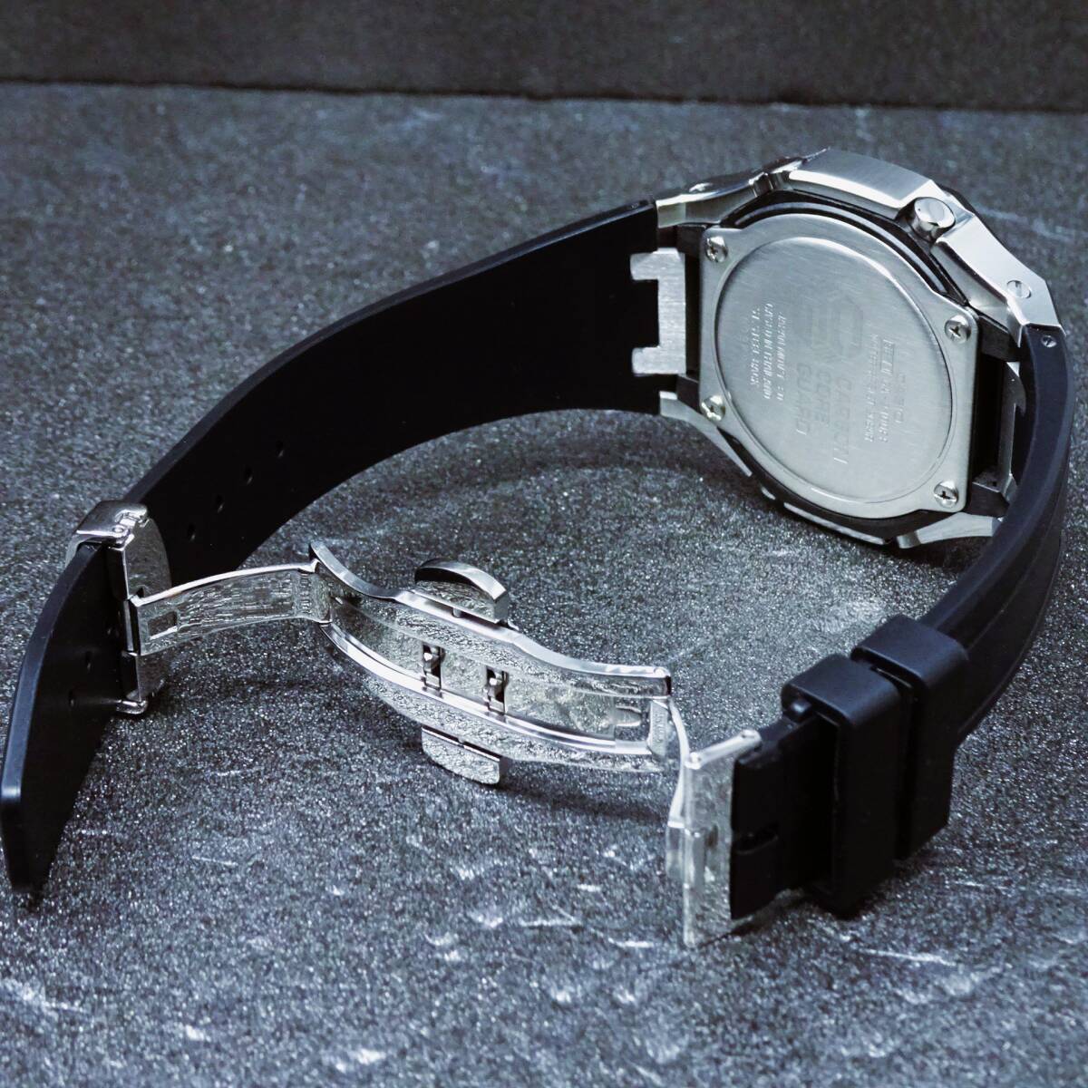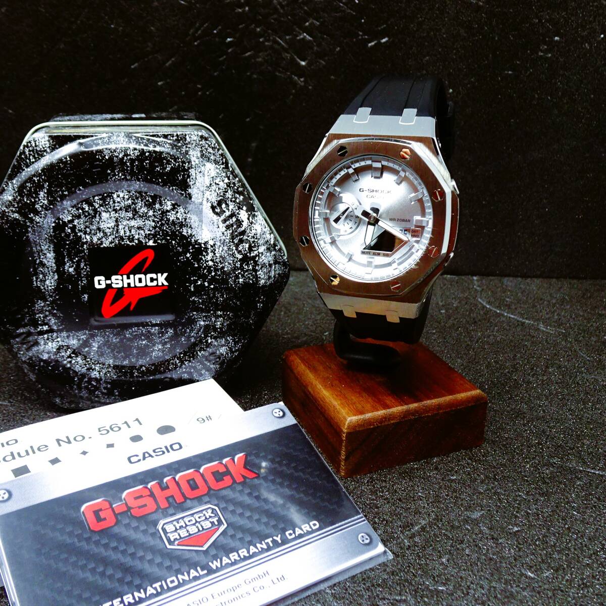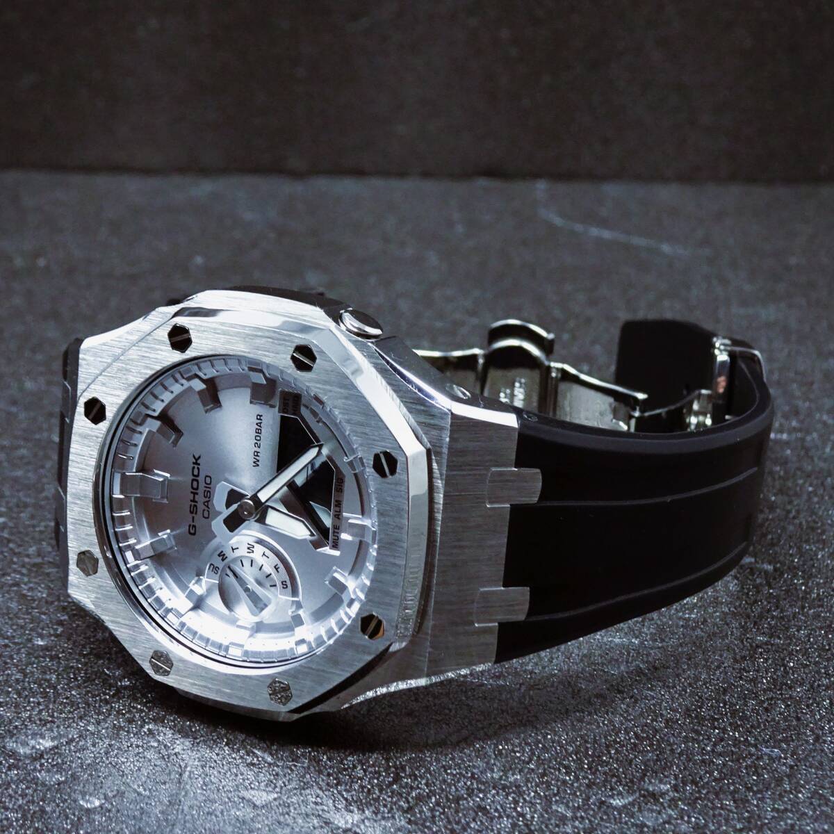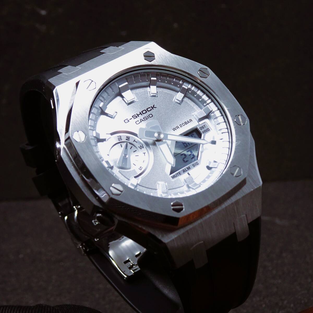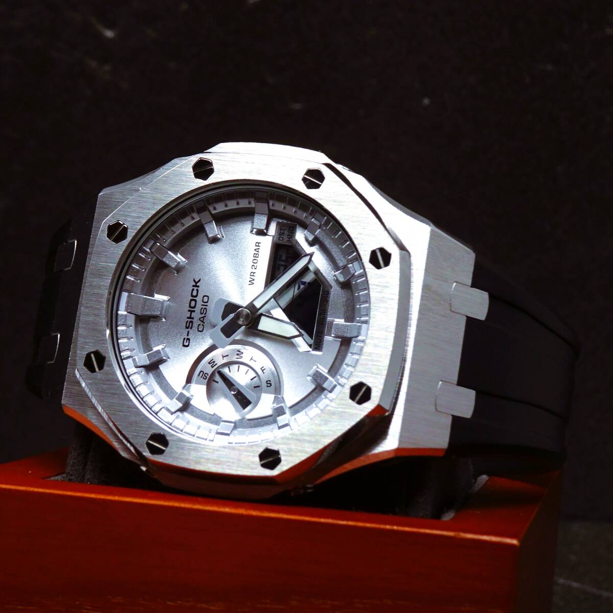 〓新品〓GショックMODカスタム〓本体付きGA2100FF〓ステンレス製シルバーベゼル&ブラックシリコンラバー腕時計〓カシオーク〓