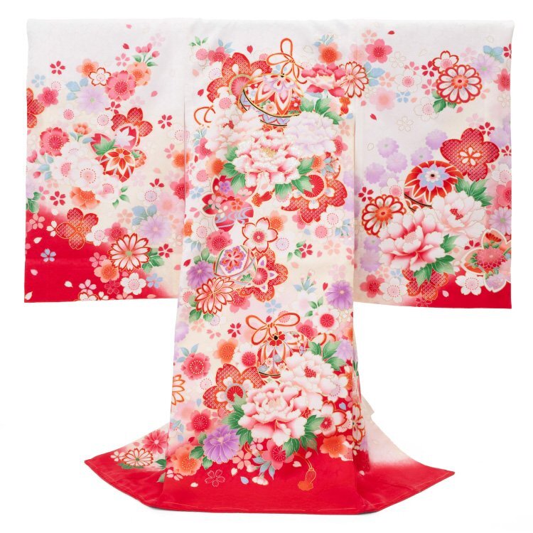 女の子用のお宮参りの着物です。 着物と長襦袢がセットになっています。 |