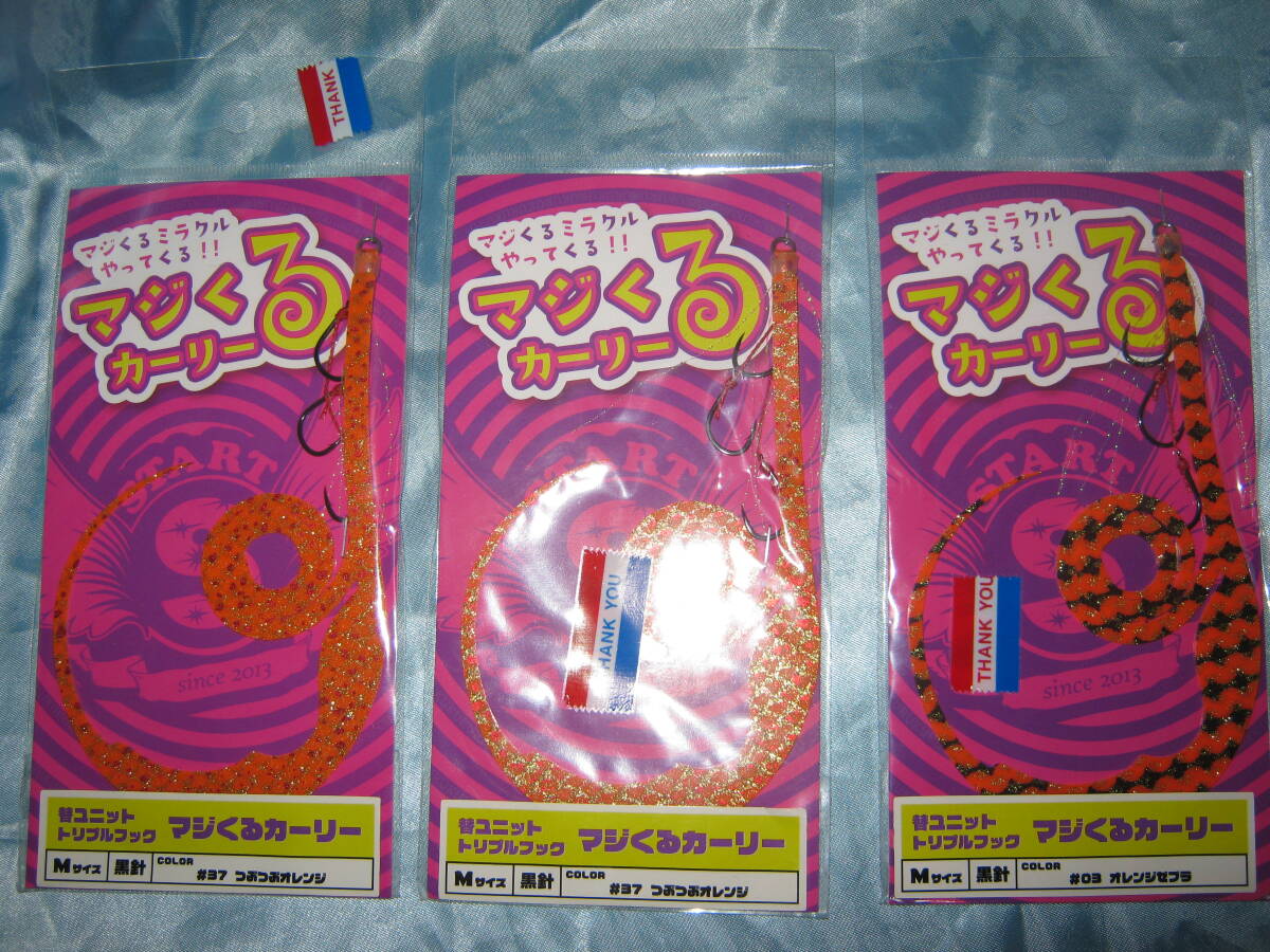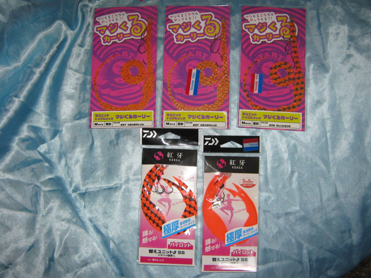 即決!未使用! マジくるカーリー(オレンジゼブラ1・つぶつぶオレンジ2)+紅牙極厚Lパデシャ2個 タイラバ 合計5個セット