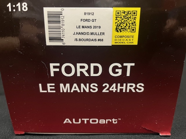 AUTO art オートアート 81912  1/18 フォード GT 2019 #68 ル・マン24時間レース LMGTE Proクラス 中古品