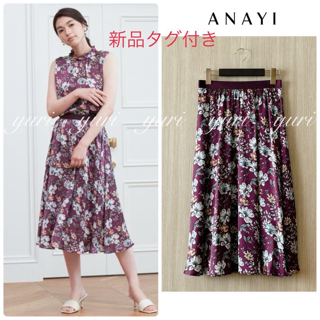 【121】新品 アナイ フラワープリントギャザーフレアスカート