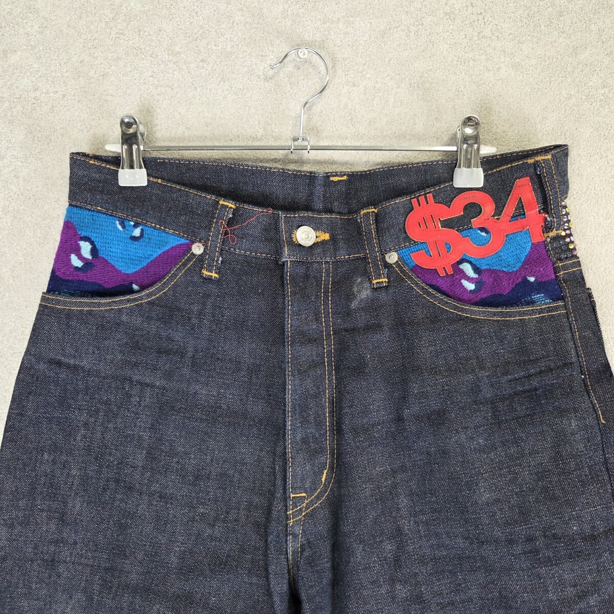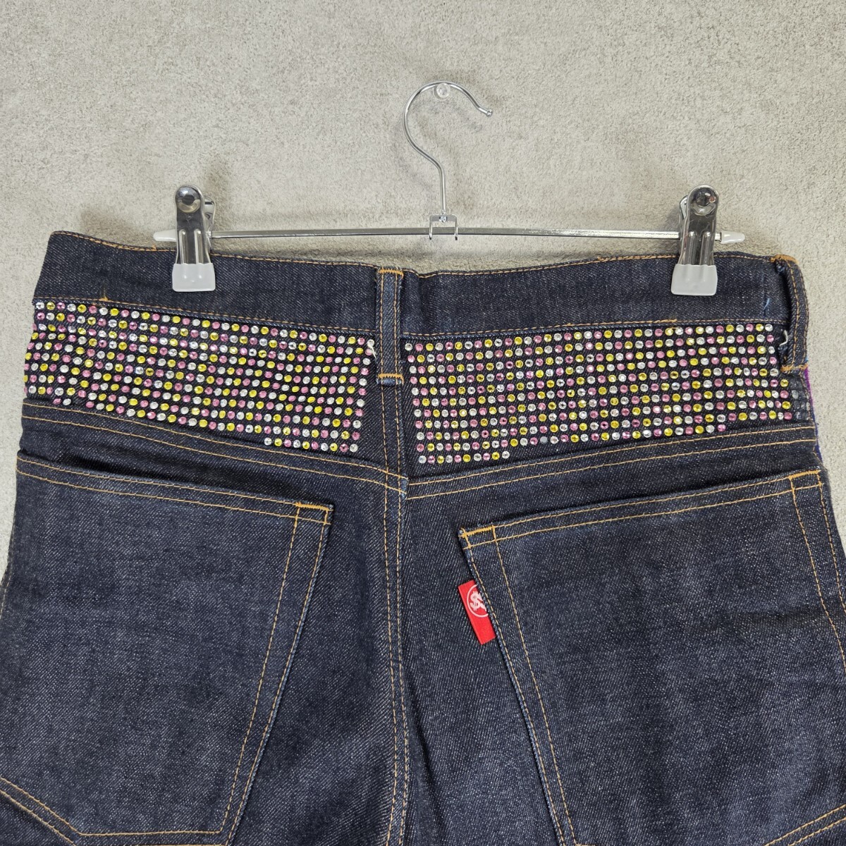 スタッズ欠けや多少の汚れは見受けられますが、年代物にしては色落ちもなく、濃紺で状態の良いお品物です。