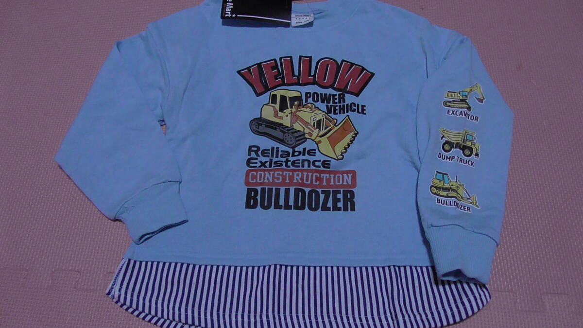 新品 130 働く車柄 長袖トレーナー ブルドーザー パワーショベル ダンプトラック 袖プリント 重機 工事車両 男の子 秋物 120cm~ 送料無料