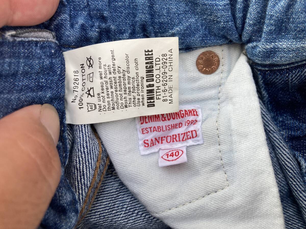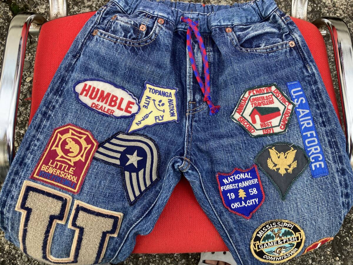 2509デニム&ダンガリーDENIM DUNGAREEワッペン付リメイク風USED加工デニムDENIMイージーEASYパンツ14ジョガー赤耳ジーンズ