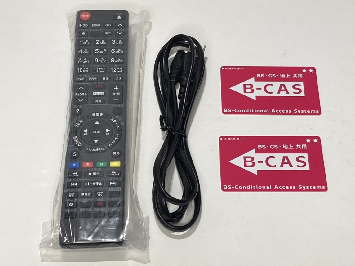 本体、電源コード、代用リモコン、B-CASカード2枚が付属。取扱説明書は付属しませんが、メーカーホームページよりダウンロードが可能です。