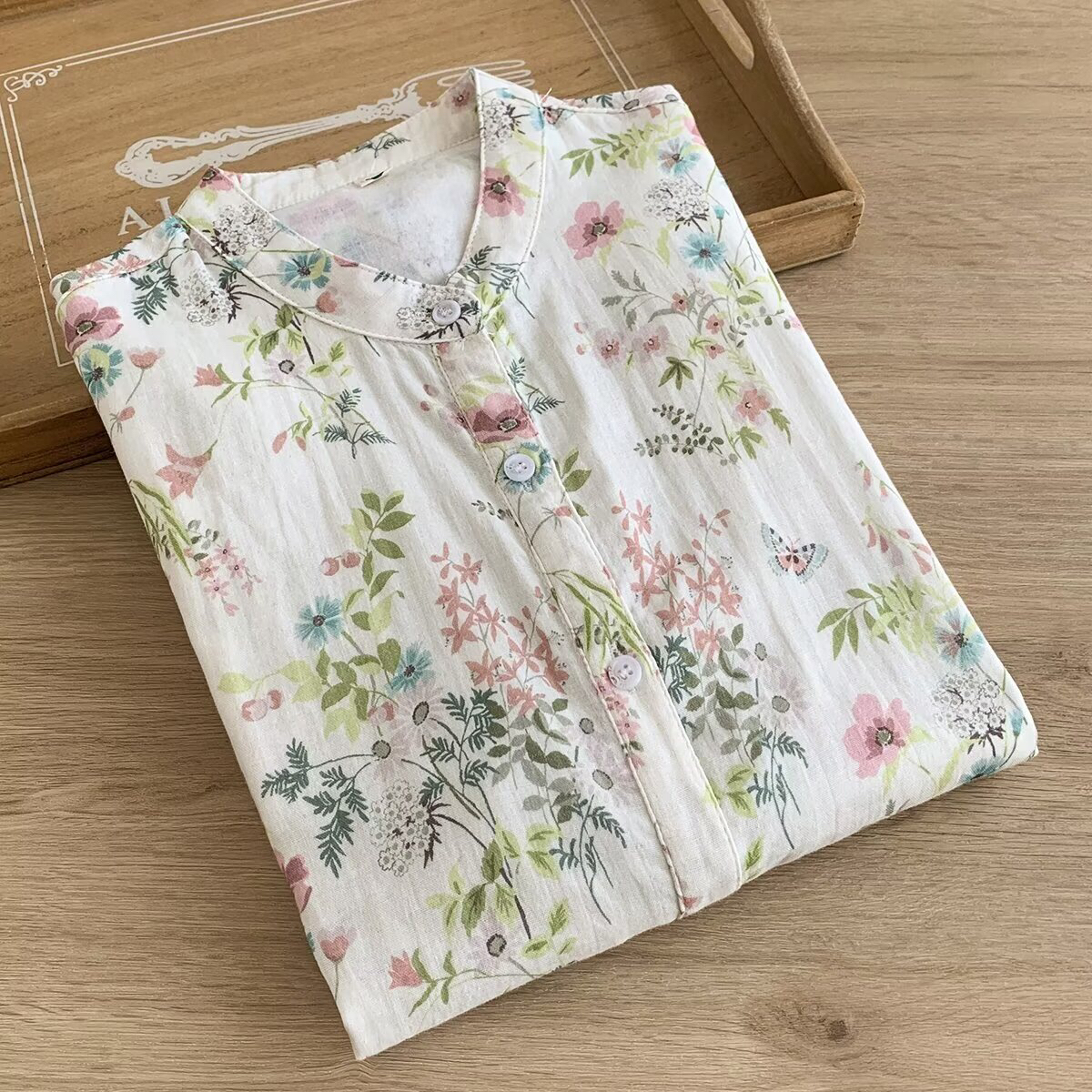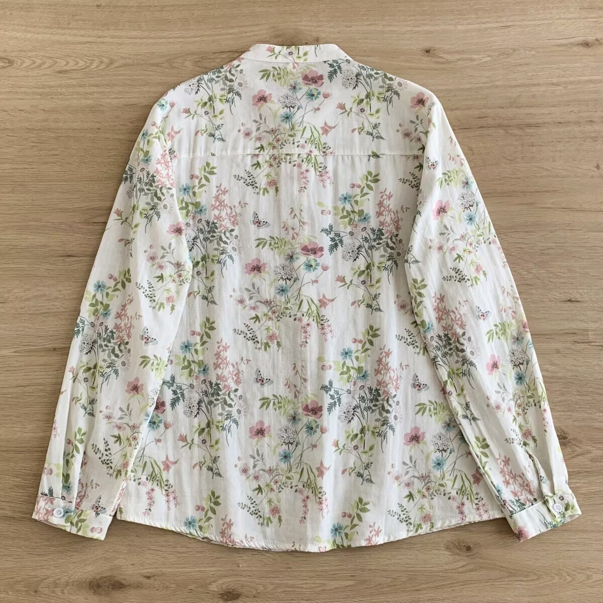 同梱1万円送料無料」レディーストップス長袖シャツ綿コットンシャツダブルガーゼ 素敵柄 肌触りいい 通気性いい シャツ トップス ブラウス