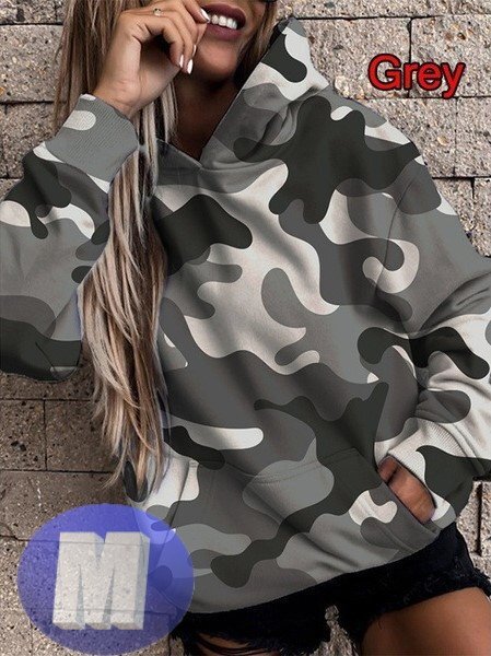 フード付き 迷彩 カモフラパーカー グレー M トレーナー アウター 防寒 n712