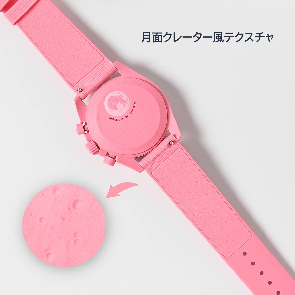 宇宙を感じさせる特徴的なデザインと、快適な装着感を両立した高品質リキッドラバーベルトです。