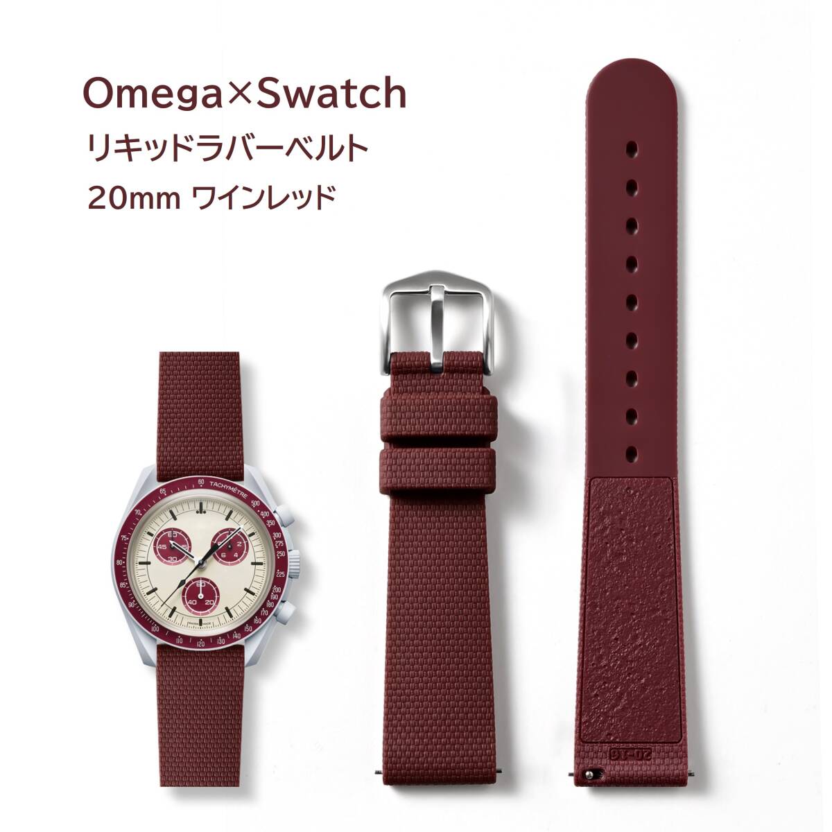 スペーステクスチャラバーベルト ラグ20mm ワインレッド