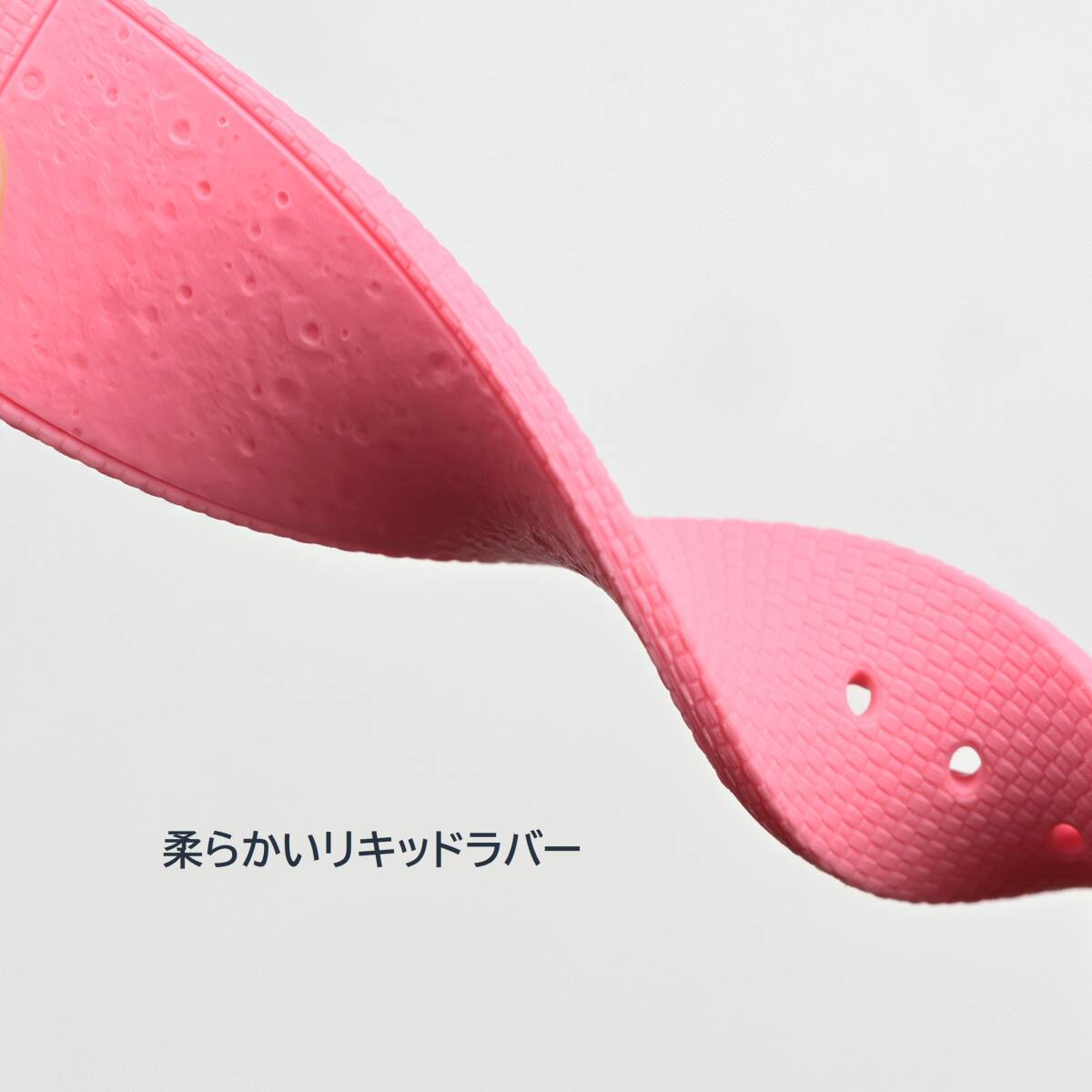 裏面にはユニークな月面クレーター風の凹凸模様をデザインし、通気性と遊び心を兼ね備えています。