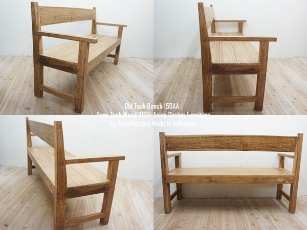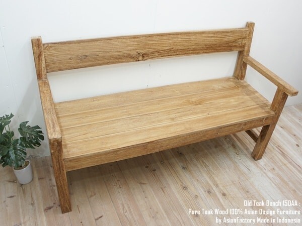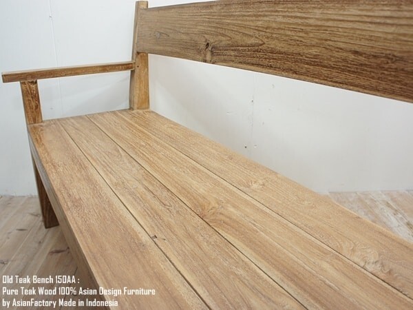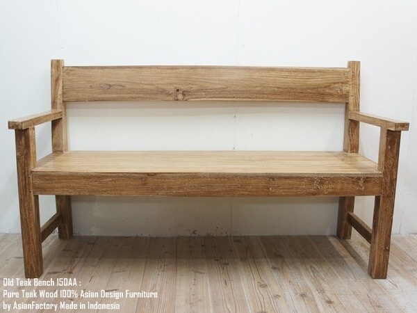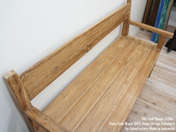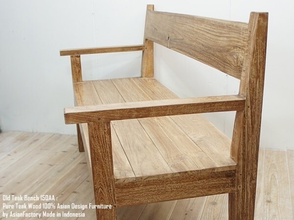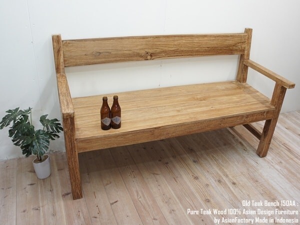 ◆ オールドチーク無垢材 ベンチ150cmアーム付 ◆ 希少木材のオールドチーク材からできた3人掛けのアーム付ベンチ150cmです。 できる限り素材の表情を生かすように心がけました。 オールドチークの深みのある表情がなんともたまりません。 玄関先に、庭先にいかがでしょう? 深めの座面とアーム付でリラックスできます。 腰掛けているだけで癒されます。 チークの古材から醸し出される独特の風合いと質感をご堪能ください。 ※分解はできません。 ■幅:150cm ■奥行:60cm ■高さ:90cm ■座面幅:138cm ■座面の奥行:45cm ■座面の高さ:45cm ※多少の誤差はお許しください。 ■カラー:ナチュラル(セラックニスのみ) ■素材:オールドチーク材(無垢) ■原産地:インドネシア