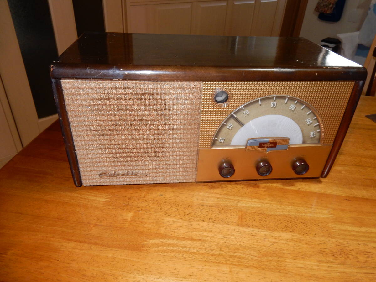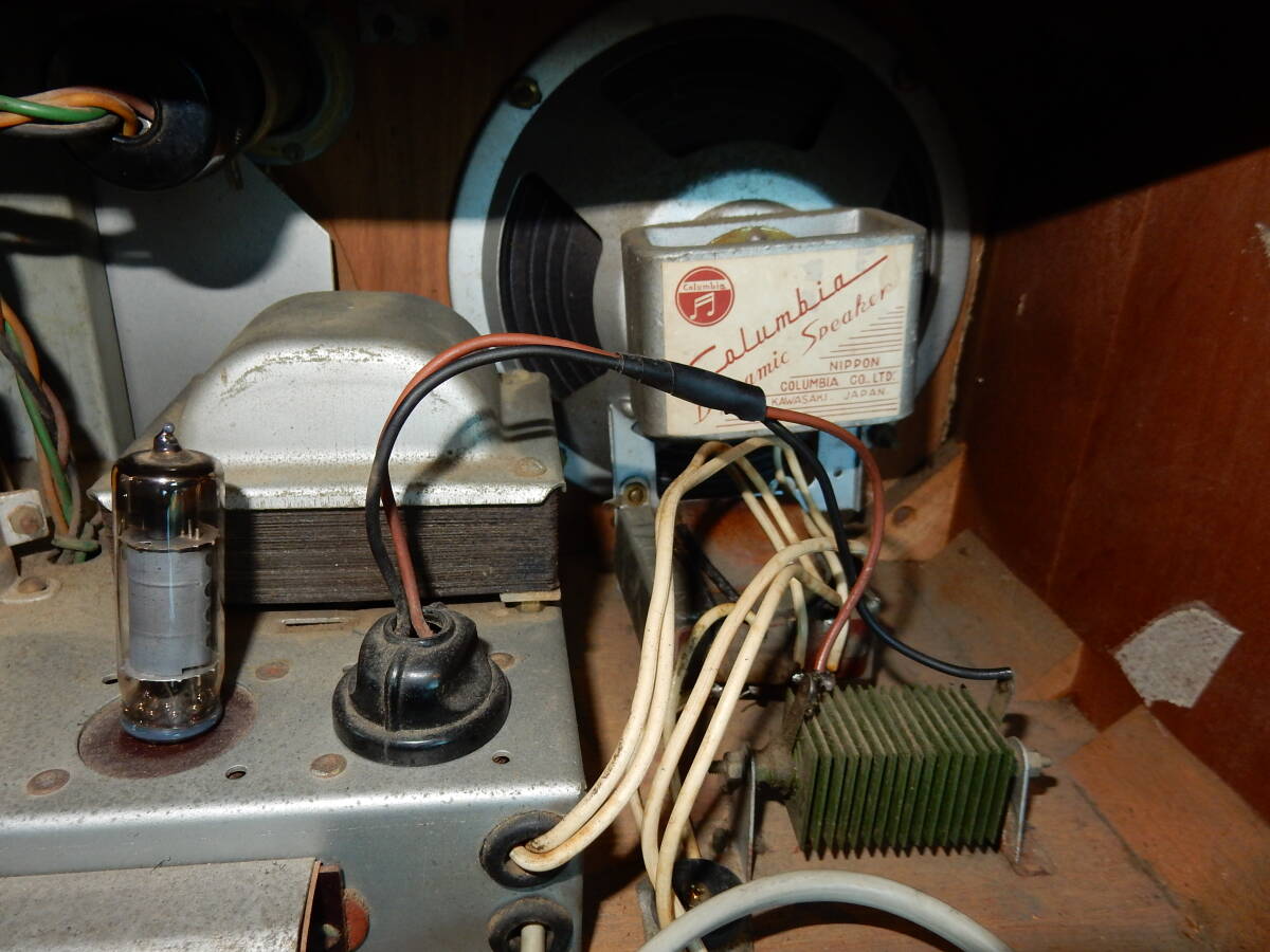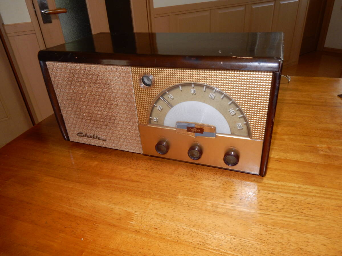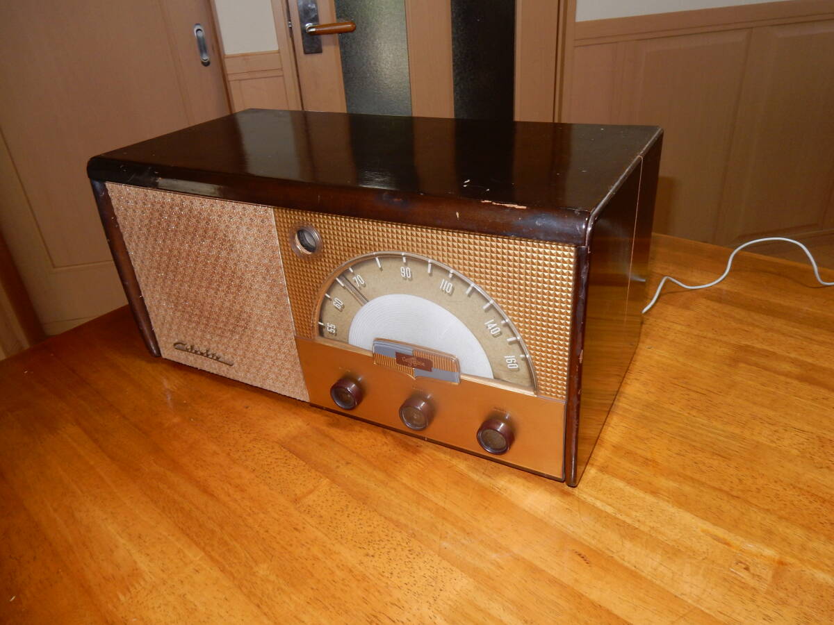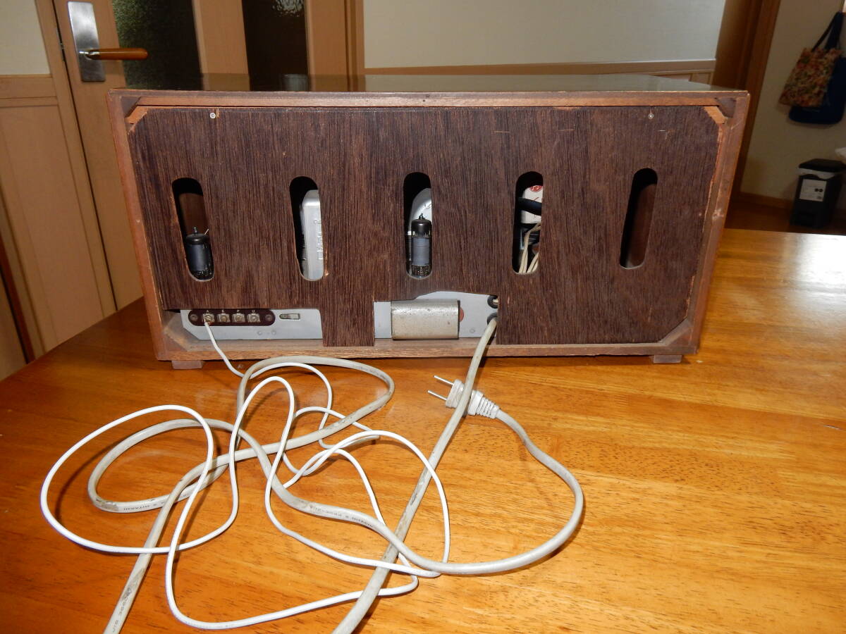 昭和28年頃のラジオです 使用している真空管は6BE6, 6BD6, 6AV6, 6AR5の5本です。度良く受信しています。マジックアイは長年の使用で、ご覧のとおり薄くなっていますが外来品と差し替えれば輝きが戻りますよ。