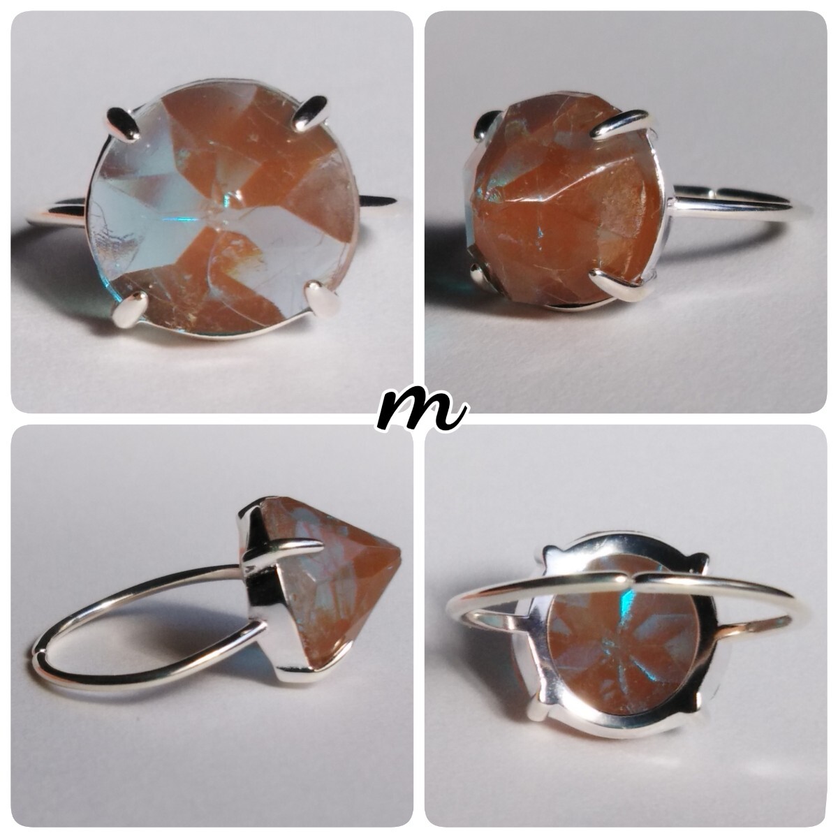 また、正面から見ると万華鏡のような花を思わせる幾何学模様のカットになっていて、その部分が、裏から見ても寄木細工のような柄でバイカラーのインタリオ風に見えたりもし、あらゆる方向から美しいカットと色合いを堪能できるサフィレットです。
