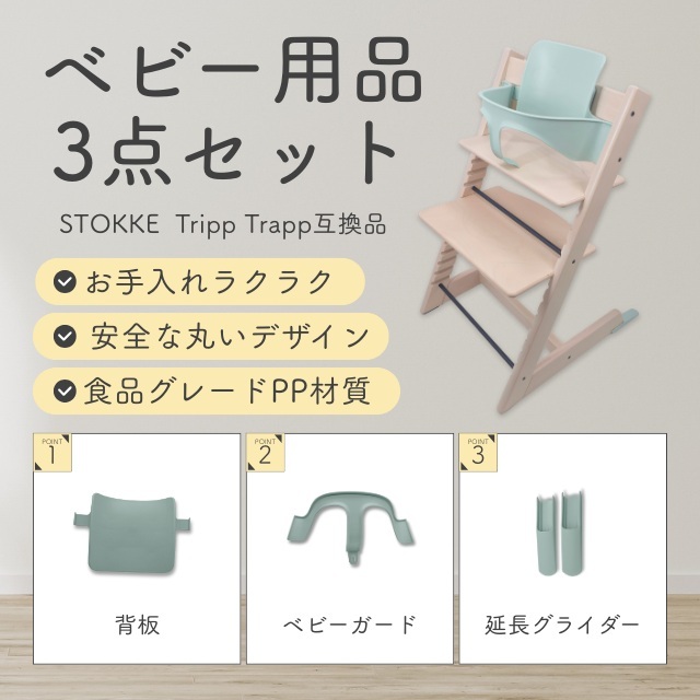 A Stokke 互換 ストッケ トリップトラップ 専用 ベビーセット 延長グライダー セット トレイ対応 ベビーチェア ハイチェア (STBS01-MT)