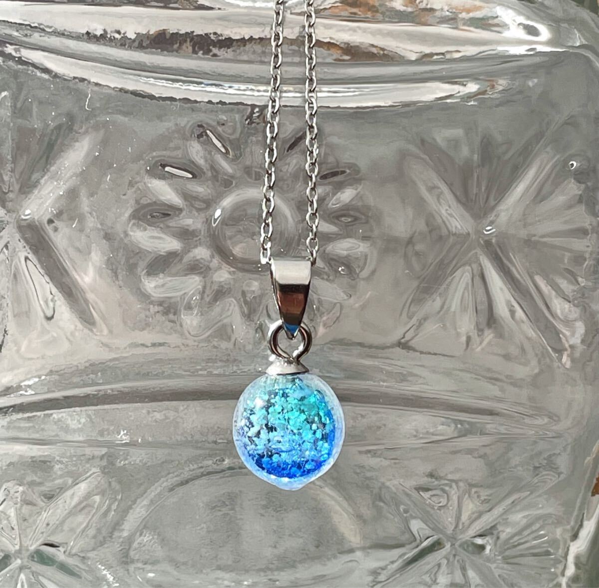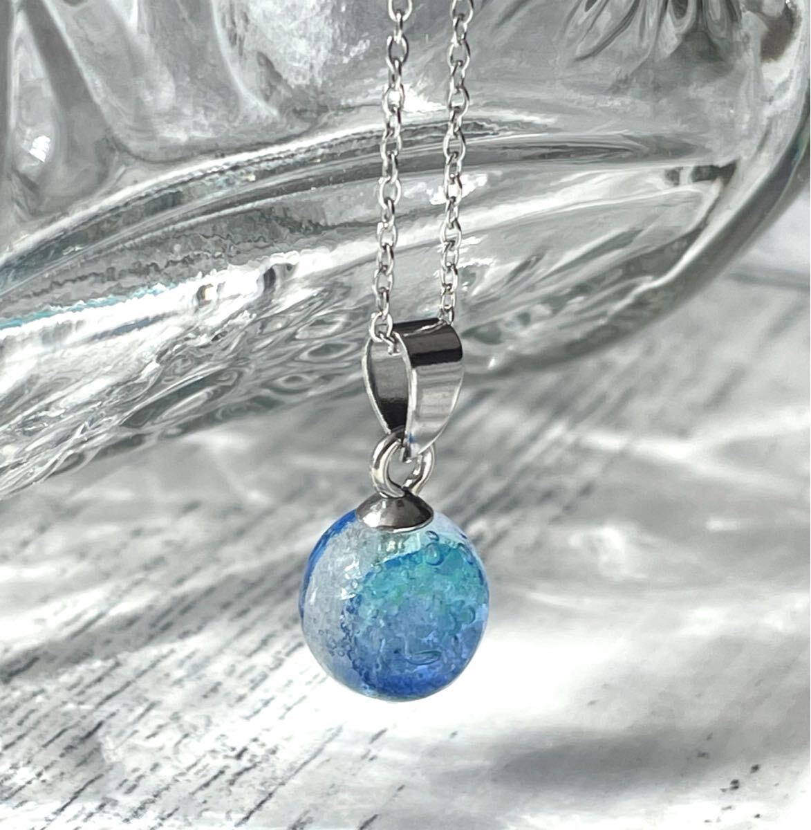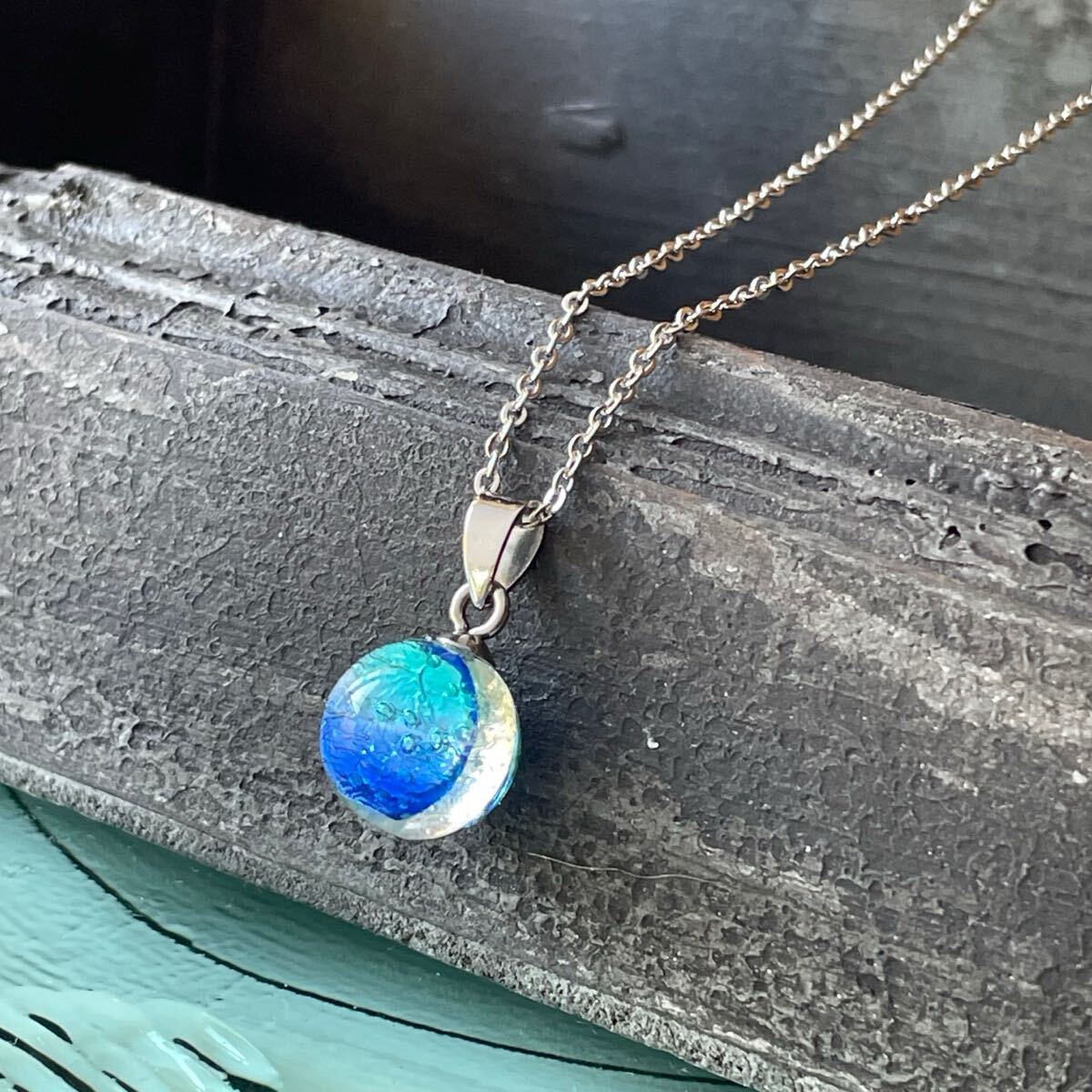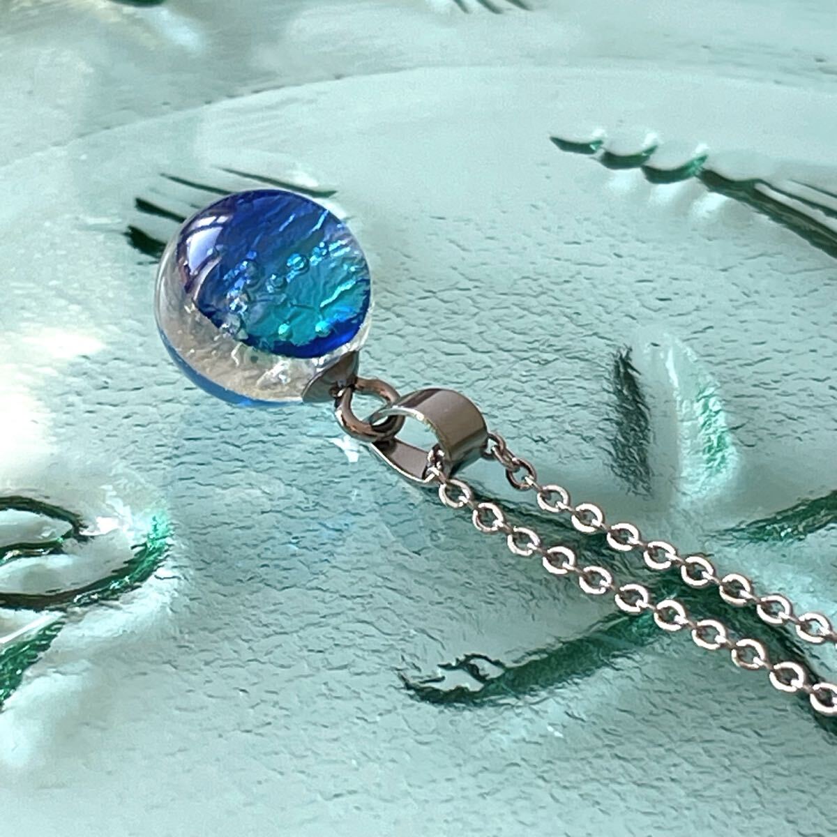 #カビラブルー #川平湾 #ホタルガラス #とんぼ玉 #トンボガラス #蓄光 #沖縄 #光るアクセサリー #ハンドメイドネックレス #ホタルガラスネックレス #ステンレスネックレス
