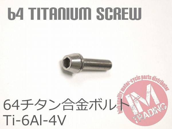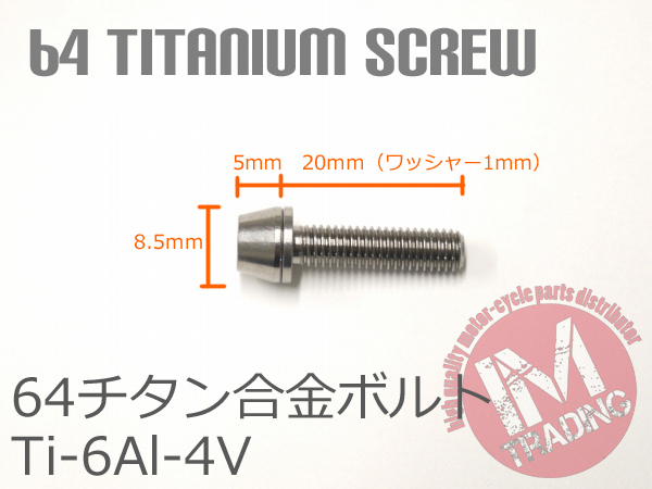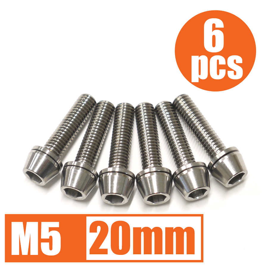 64チタン合金ボルト M5×20mm P0.8 6本セット ワッシャー付き テーパーキャップ ゆうパケット対応 焼き色なし Ti-6Al-4V