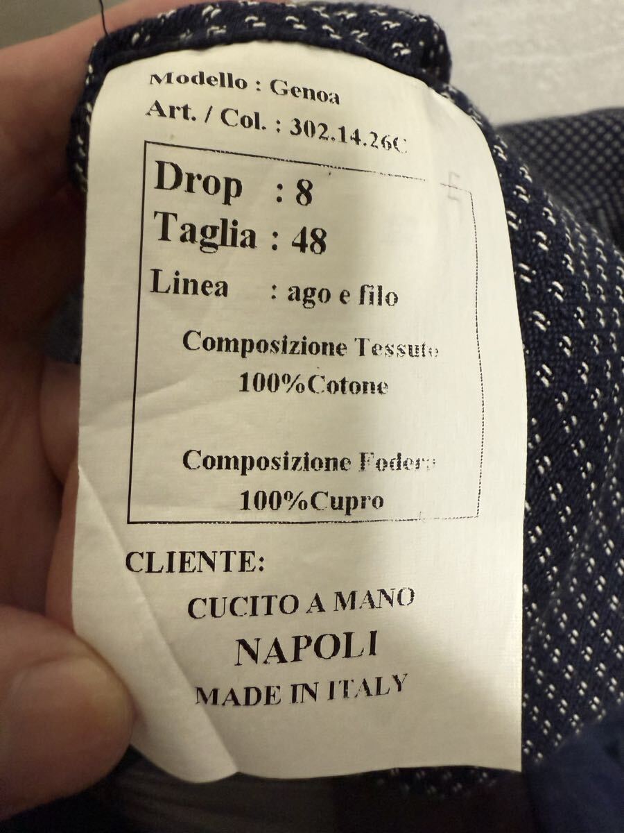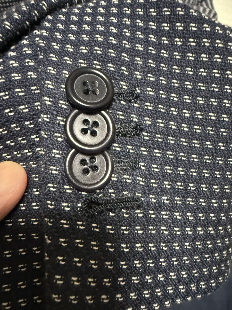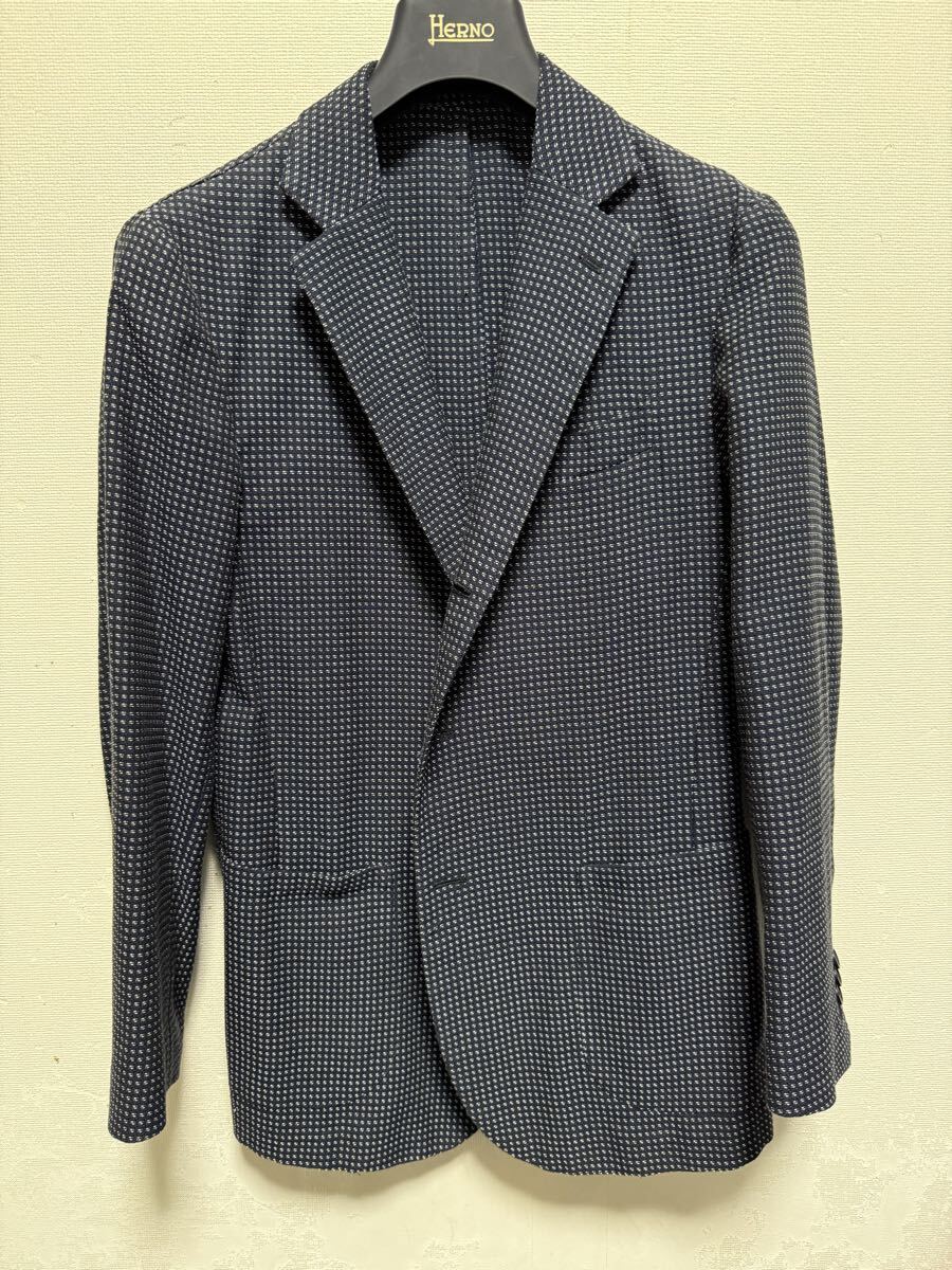 数年前に当オークションで購入した、エッリコフォルミコラのネイビージャケットです。生地がネイビーに白の織りが入った柄になっており珍しいと思います。