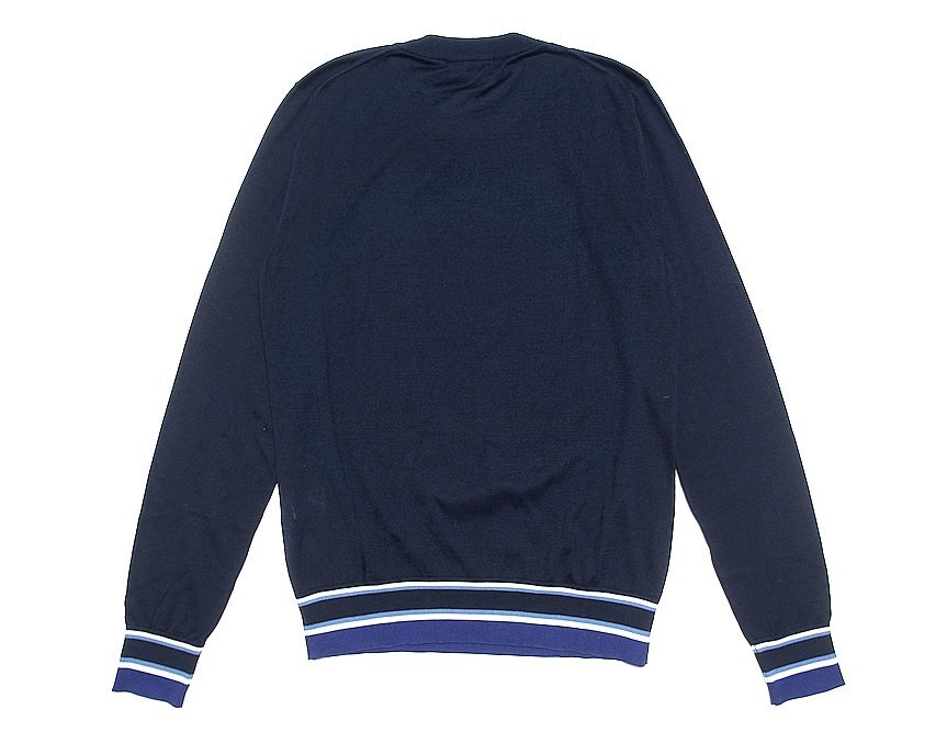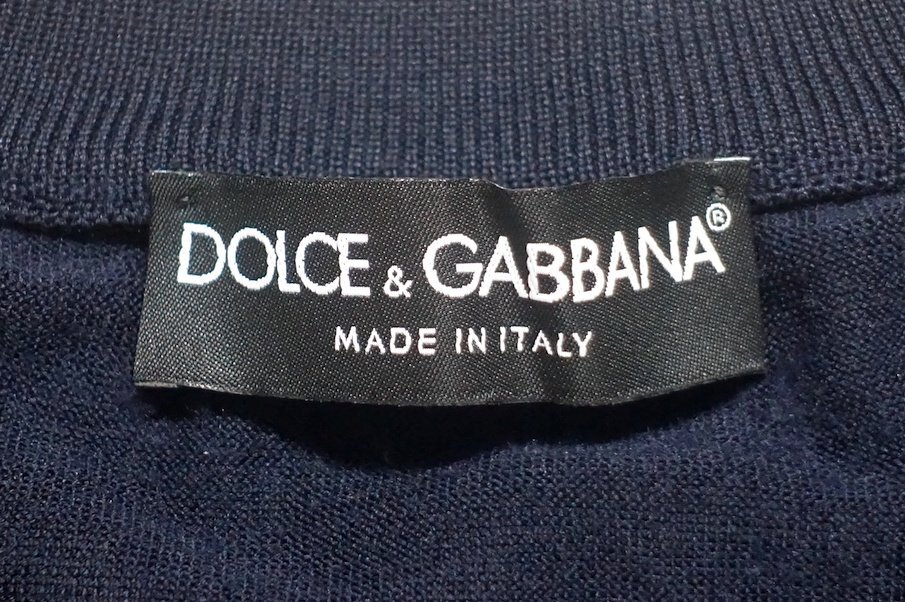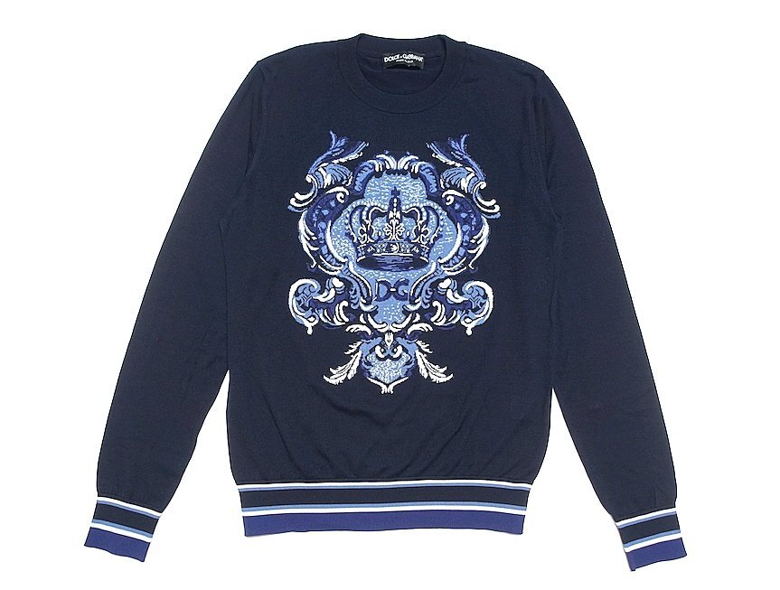 極美品 DOLCE & GABBANA ドルガバ クラウン & マヨルカ エンブロイダリー シルク ニット セーター ダークネイビー シルク100% メンズ 44