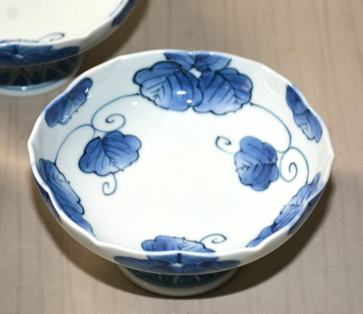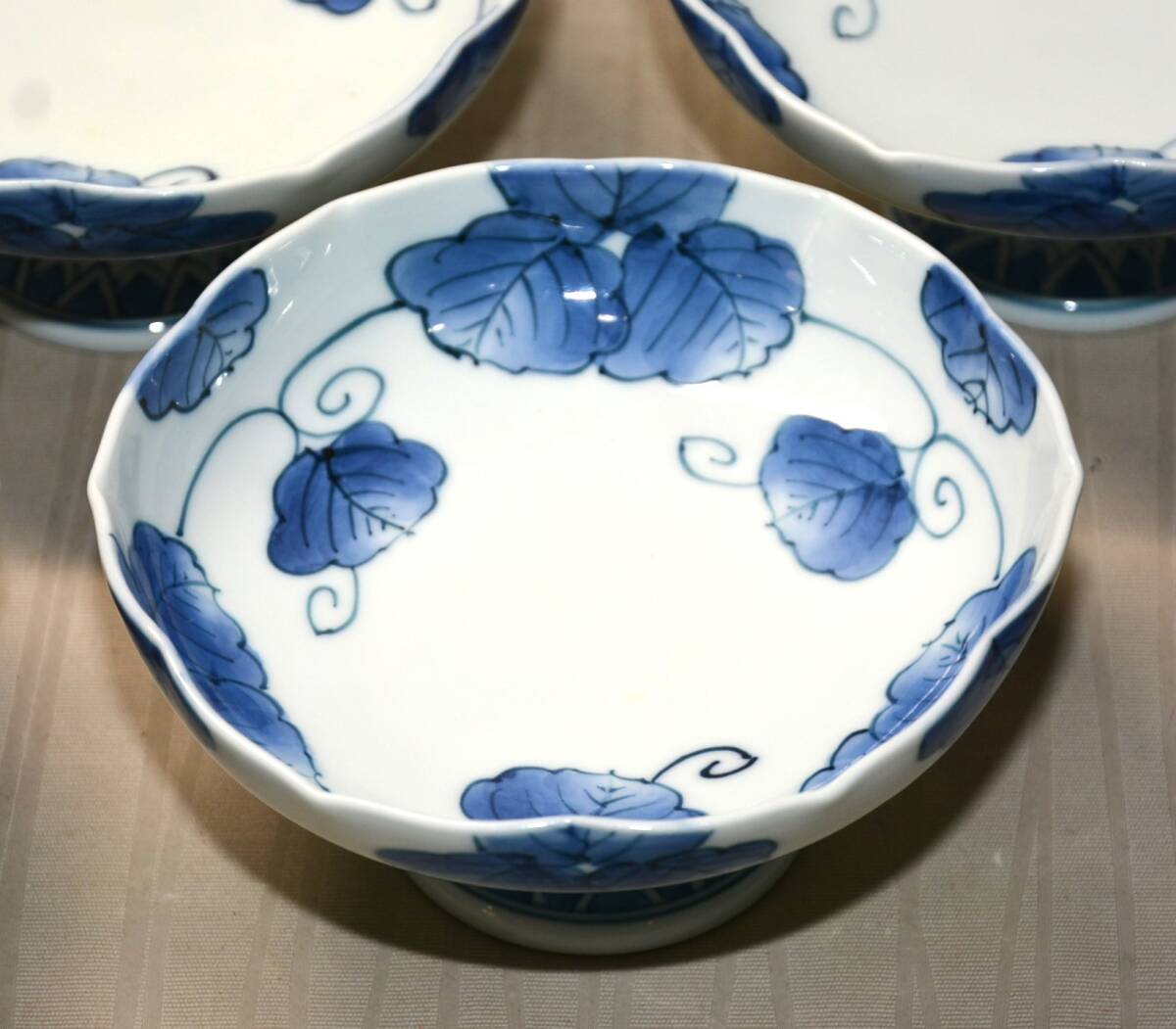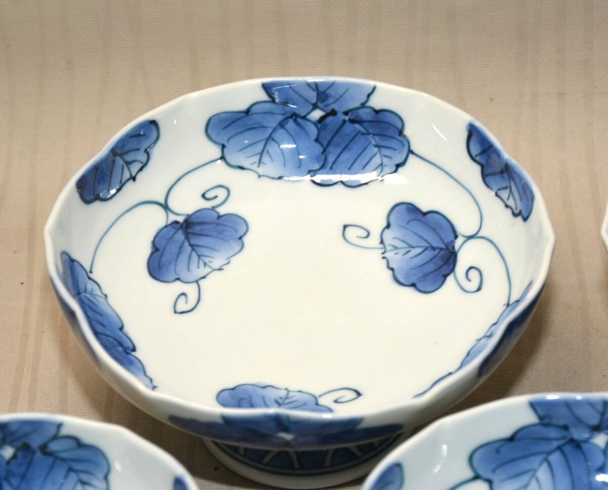 27◆初荷です ◆平戸焼 三川内焼 啓祥窯 染付蔦絵高台向付 5客 13.3cm ◆料理に使いやすいサイズです 高級和食器 懐石