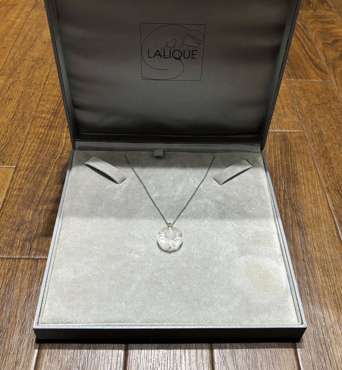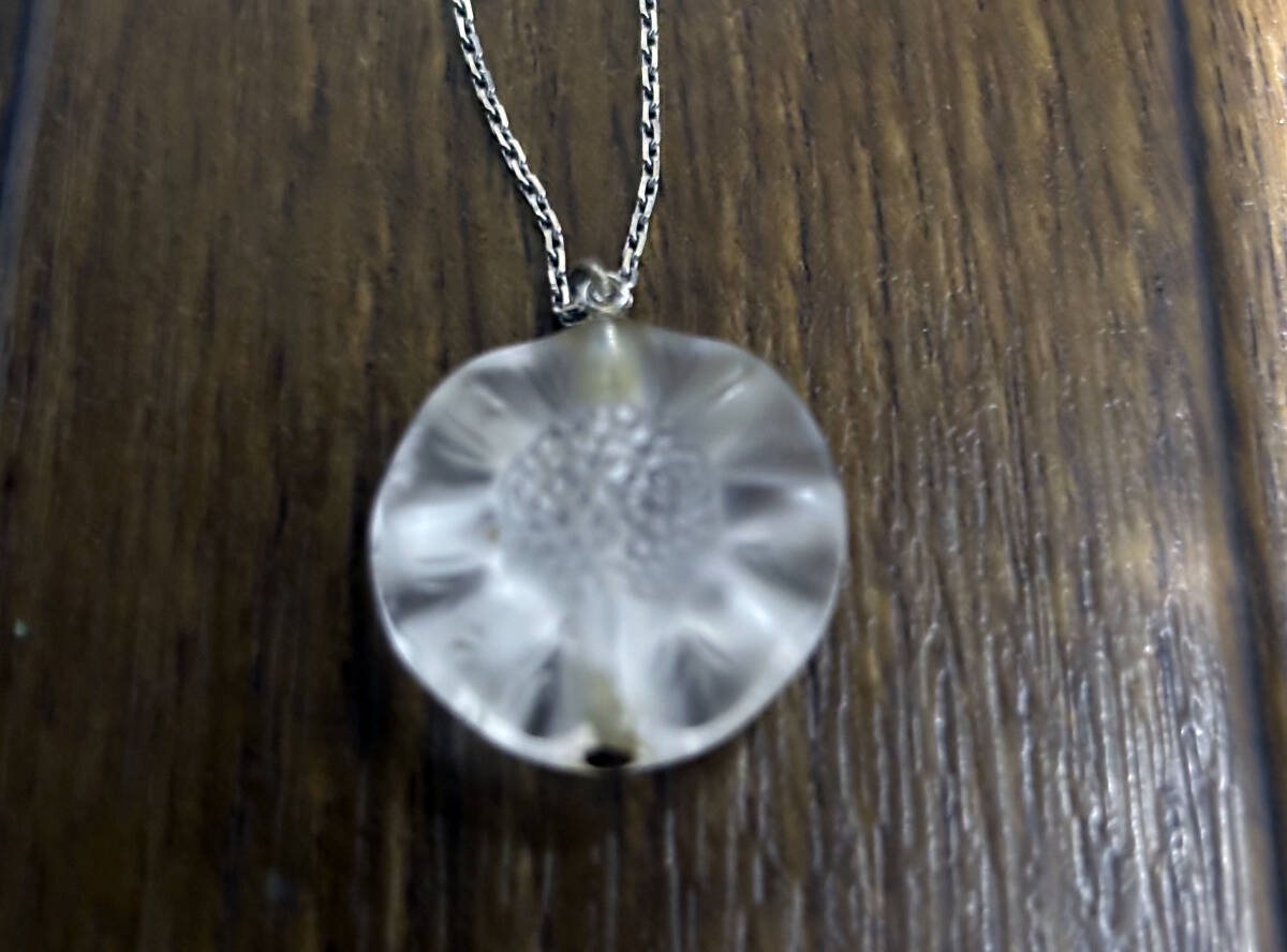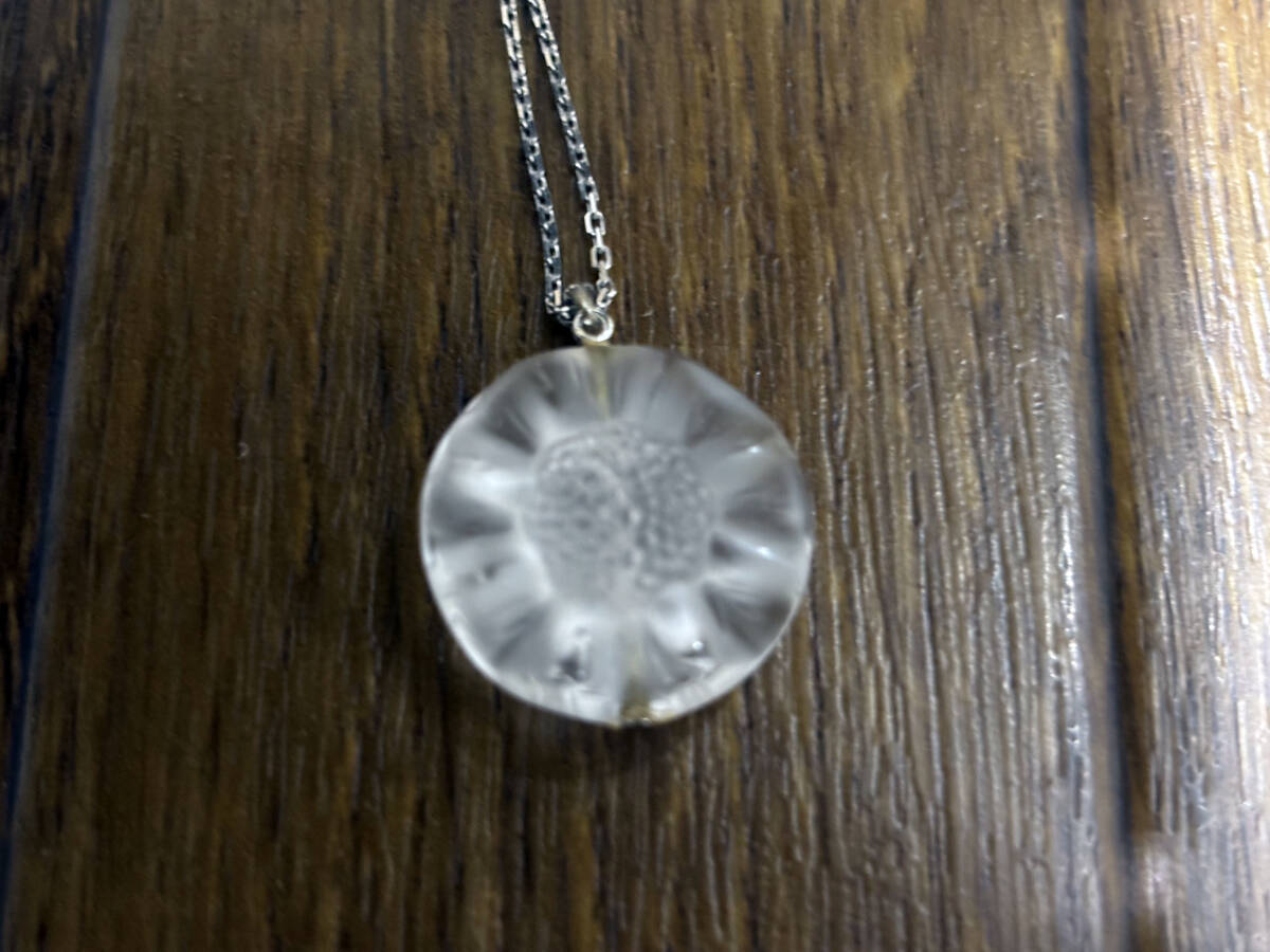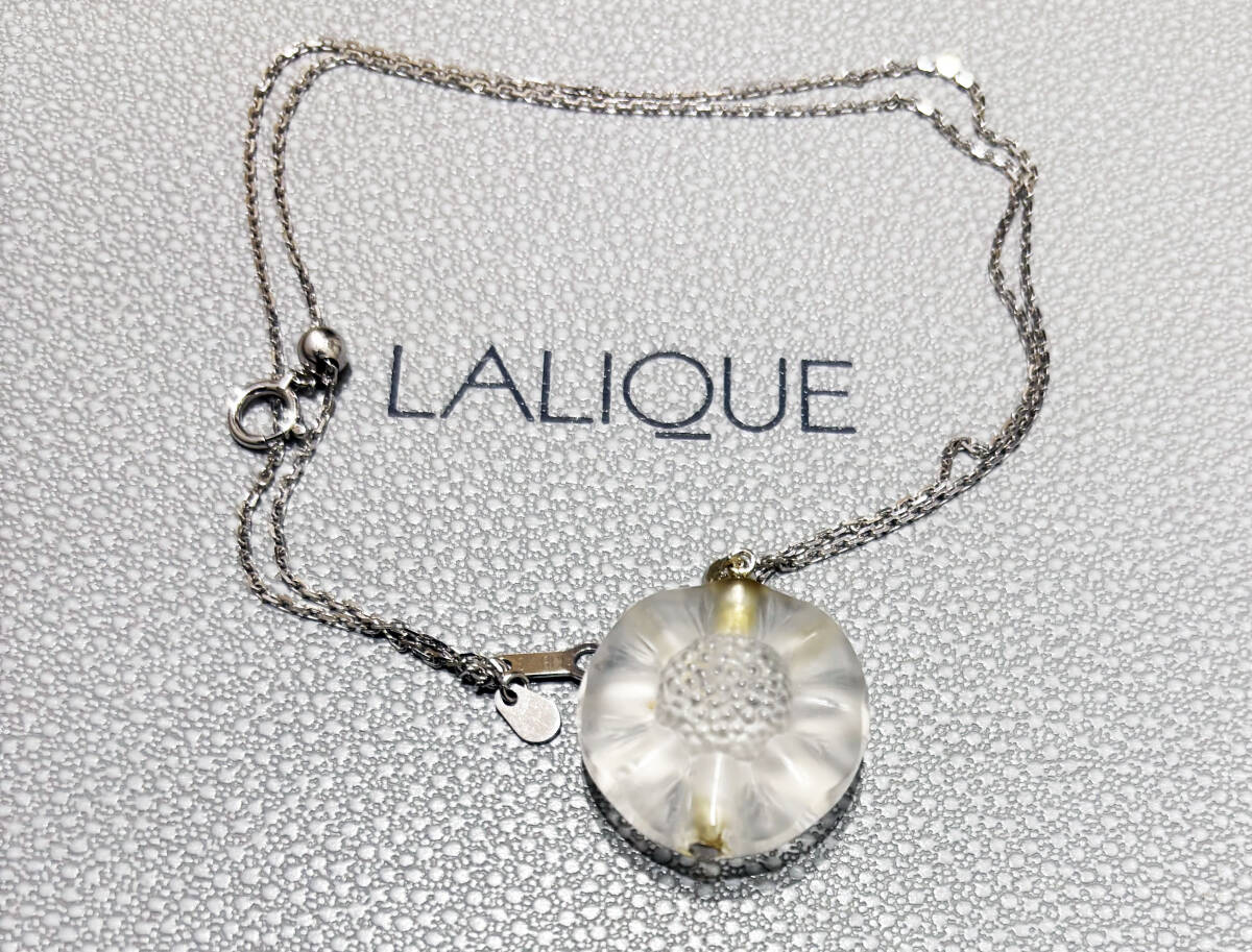 ★ラリックのアイコンモチーフの一つであるフラワーモチーフのネックレス/ペンダントです。モチーフは両面に施されています。 ★シルバーのチェーンが付属して居りましたが、劣化してきたため、18金ホワイトゴールドのスライドアジャスター付きチェーンにて仕立て直しました。 ★保存用の箱は少々劣化して居りますが、本体は綺麗な状態です。中古品に御理解のある方、現状に御納得戴ける方、御願い申し上げます。 ★気持ちよく御取引させて戴くため、項目「その他」の御一読を御願い申し上げます。御入札戴いた場合、記載内容を御了承戴けたものと判断させて下さい。 | |