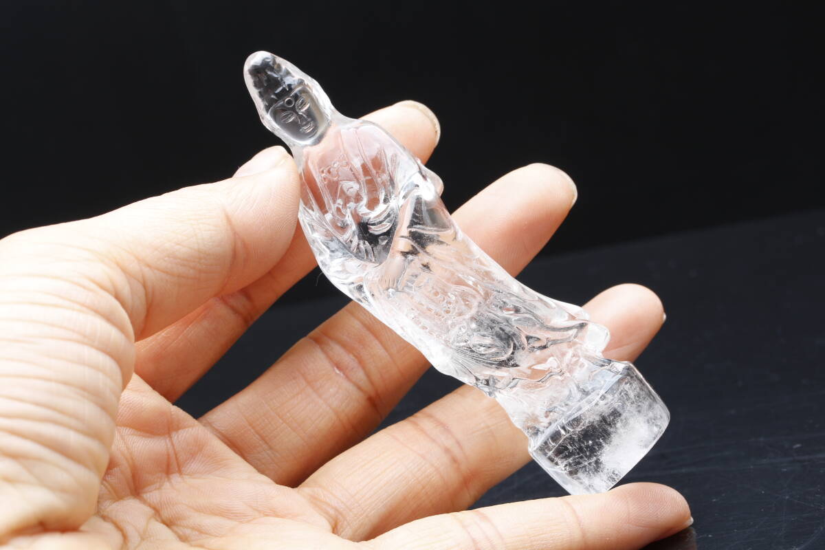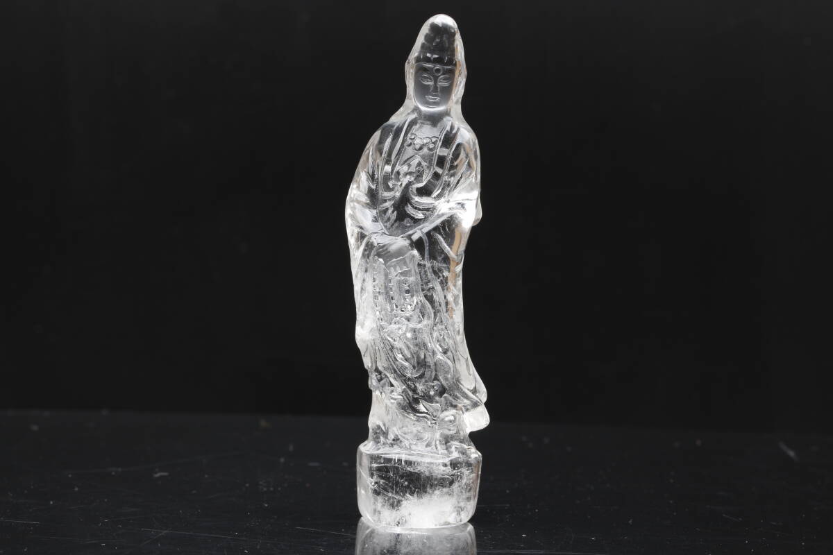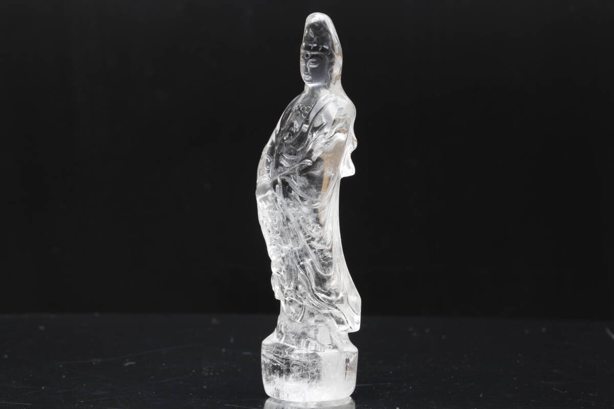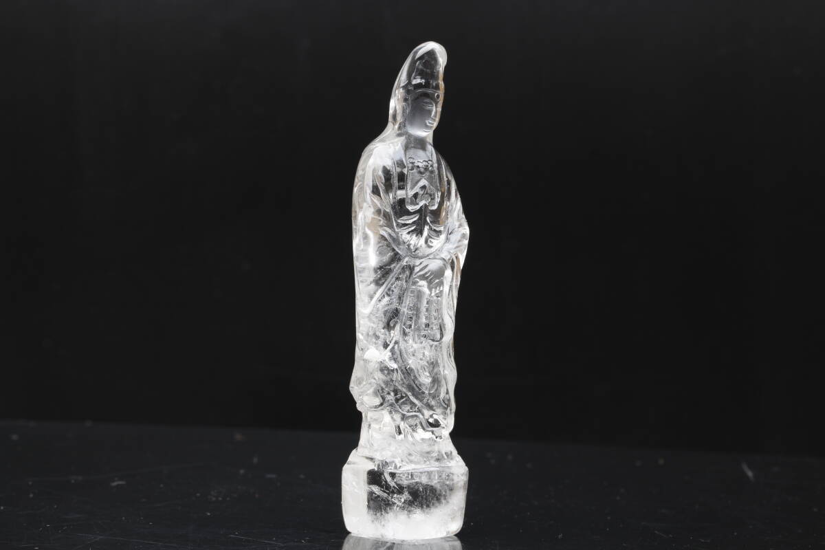 天然クリスタル 観音様置物 中国仏教美術 仏様 神様 パワーストーン ブラジル産 天然水晶 高さ:約91.3mm【bgy-48】 | |