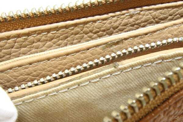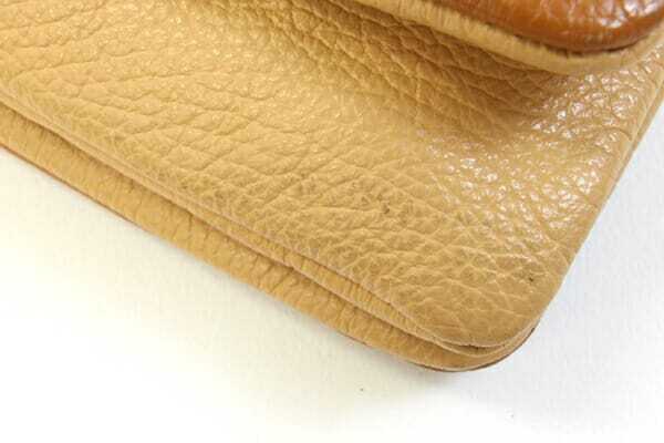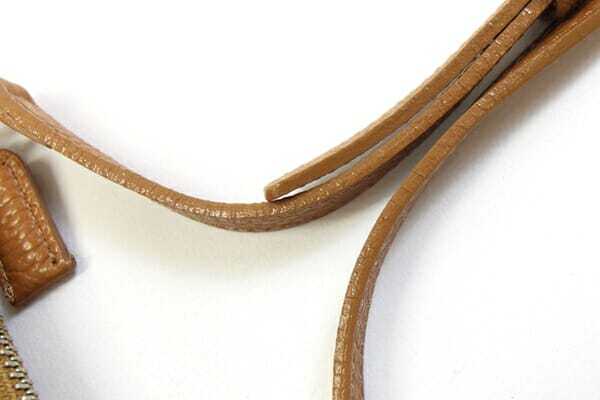 | 状態 | 外側:全体的にスレ、所々薄スレヨゴレ・小ヨゴレあり、ベージュ部分には薄黒スレヨゴレもあり。入口のフチにスレあり。ショルダーの付け根部分にコーティング割れあり。 内側:スレ、薄汚れ、シミヨゴレあり。 金具:スレ、クスミあり。 |