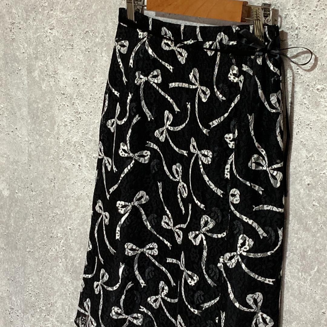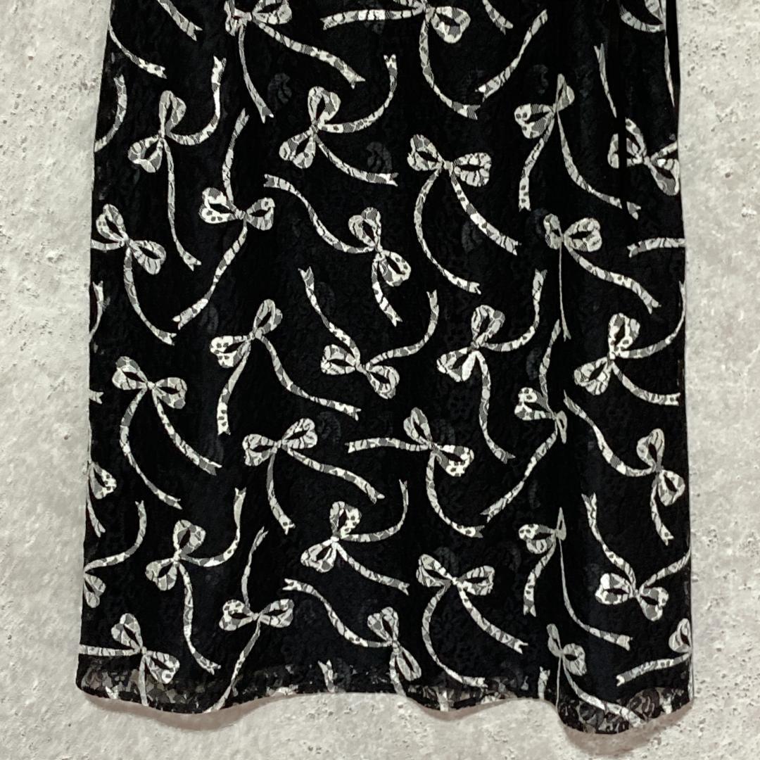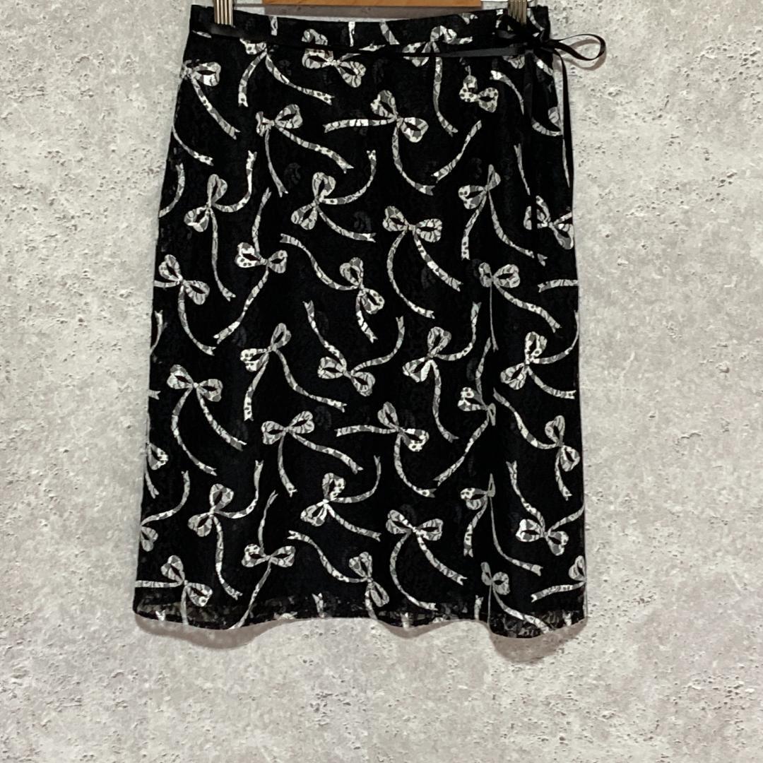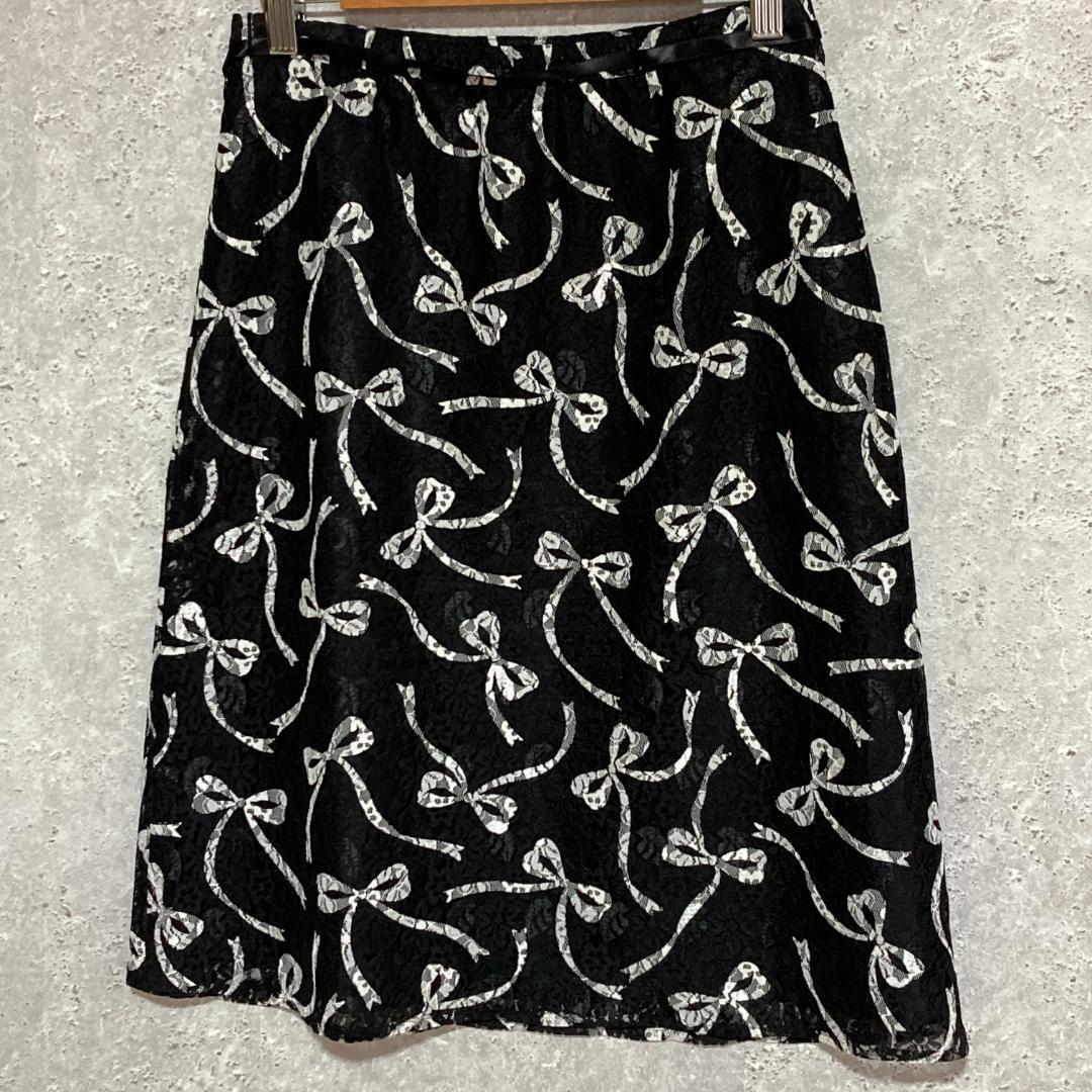 オプティ(03)フレアスカート*リボン柄*裏地*ウエストリボン*レース*膝丈
