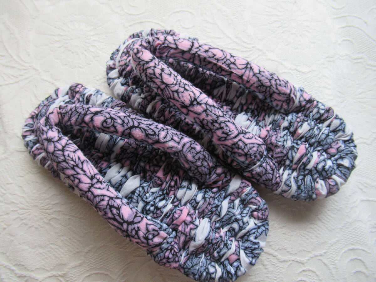 手作り 布草履 布ぞうり 白地にグレーとピンクの浴衣地 共布の鼻緒 23.5cm