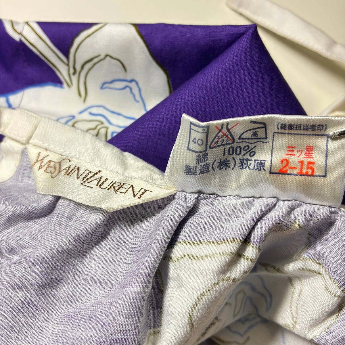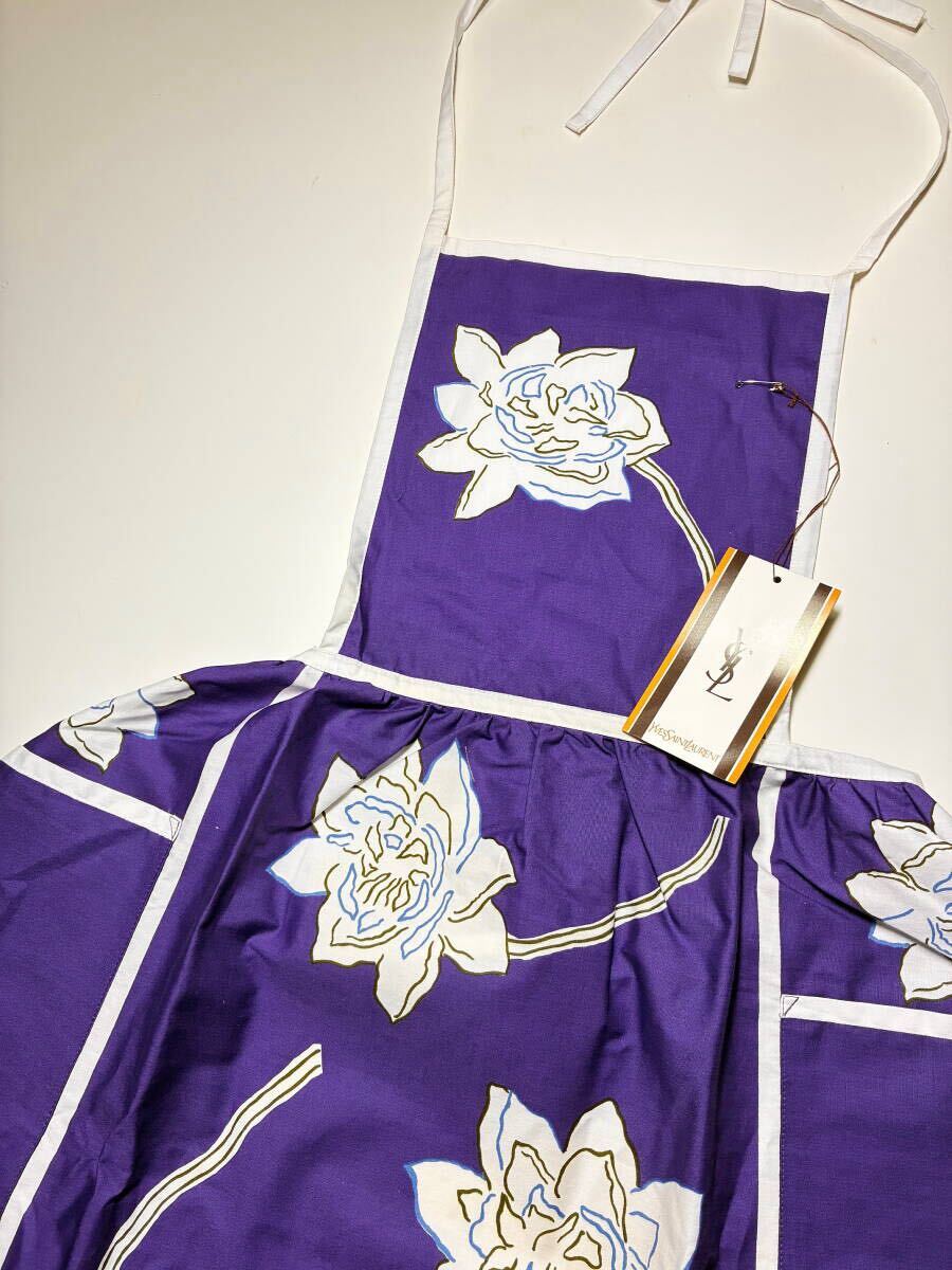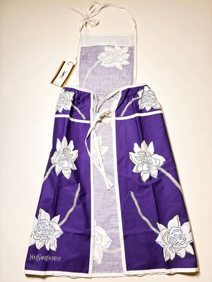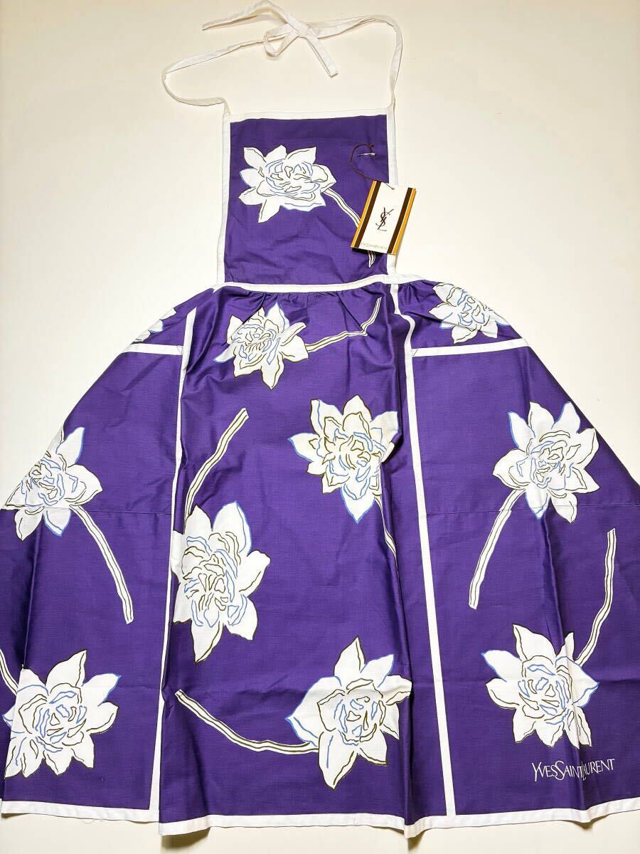 ★レトロサイケ★日本製 YSL イヴサンローラン エプロン パープル 花柄 未使用/保管品★