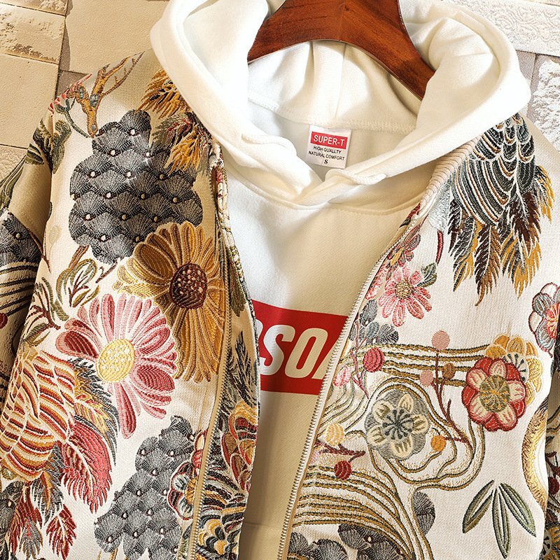 スカジャン メンズ 和柄 刺繍 ジャンパー ブルゾン バイクジャケット アウターライダース 長袖 大きいサイズあり ★Lサイズ